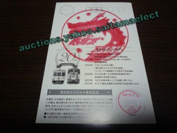 観光列車「奥出雲おろち号」20周年記念デザイン・記念乗車証(スタンプ押印) です。