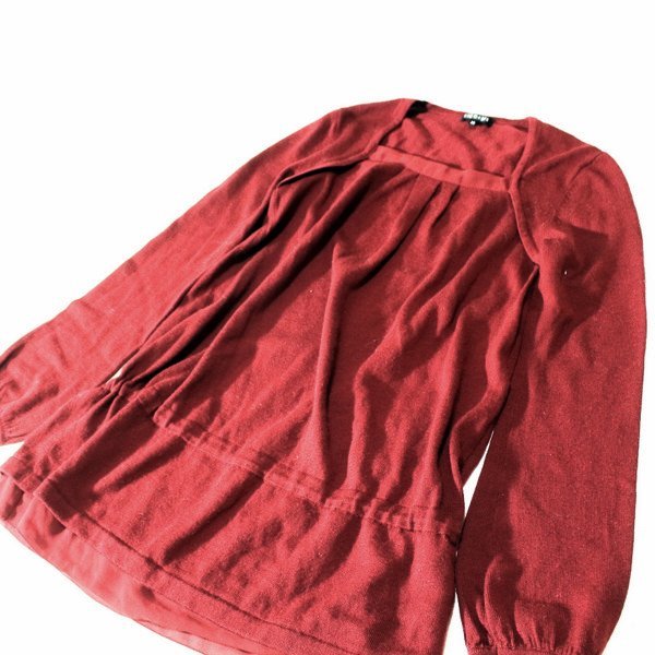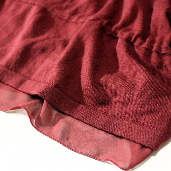 裾にシフォンがドッキングされたウール100%のニットプルオーバーです。