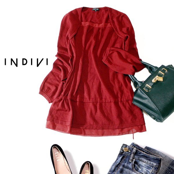 ☆☆ 美品 INDIVI インディヴィ ☆☆ ウール100% 裾シフォン ニット プルオーバー 38号 M 秋 冬 23D10