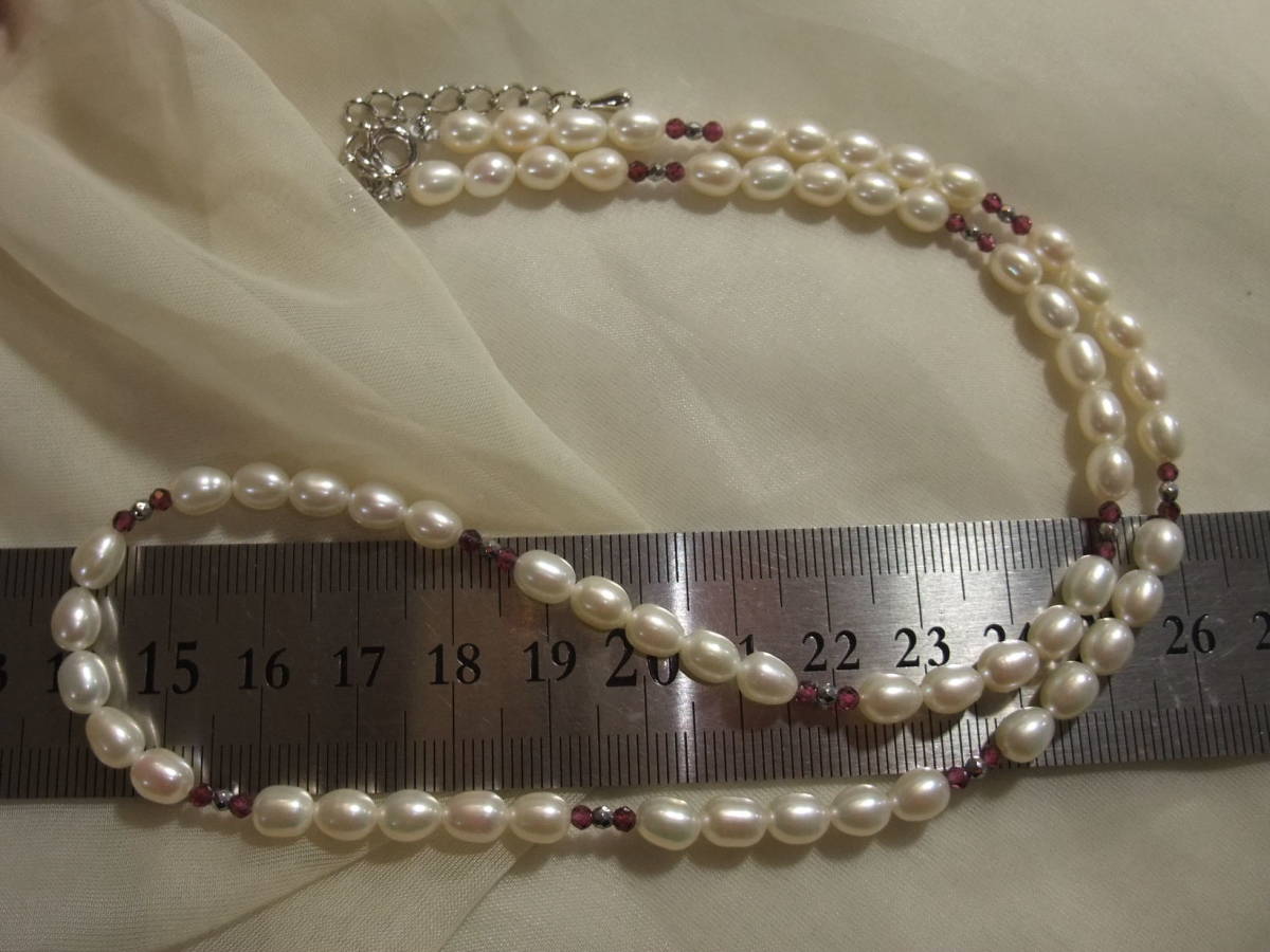 綺麗!本物真珠ネックレス!人気純白淡水パール淡水真珠とガーネット小粒waterpearlneckless在庫未使用品処分!色々まとめて同梱可能E3