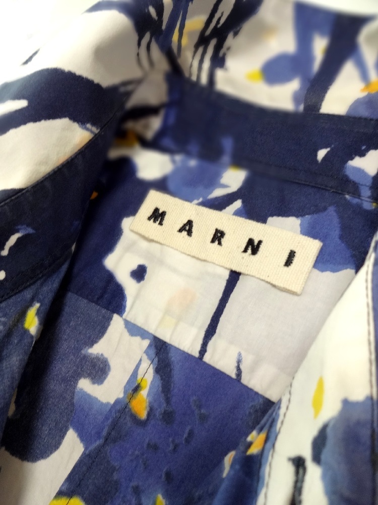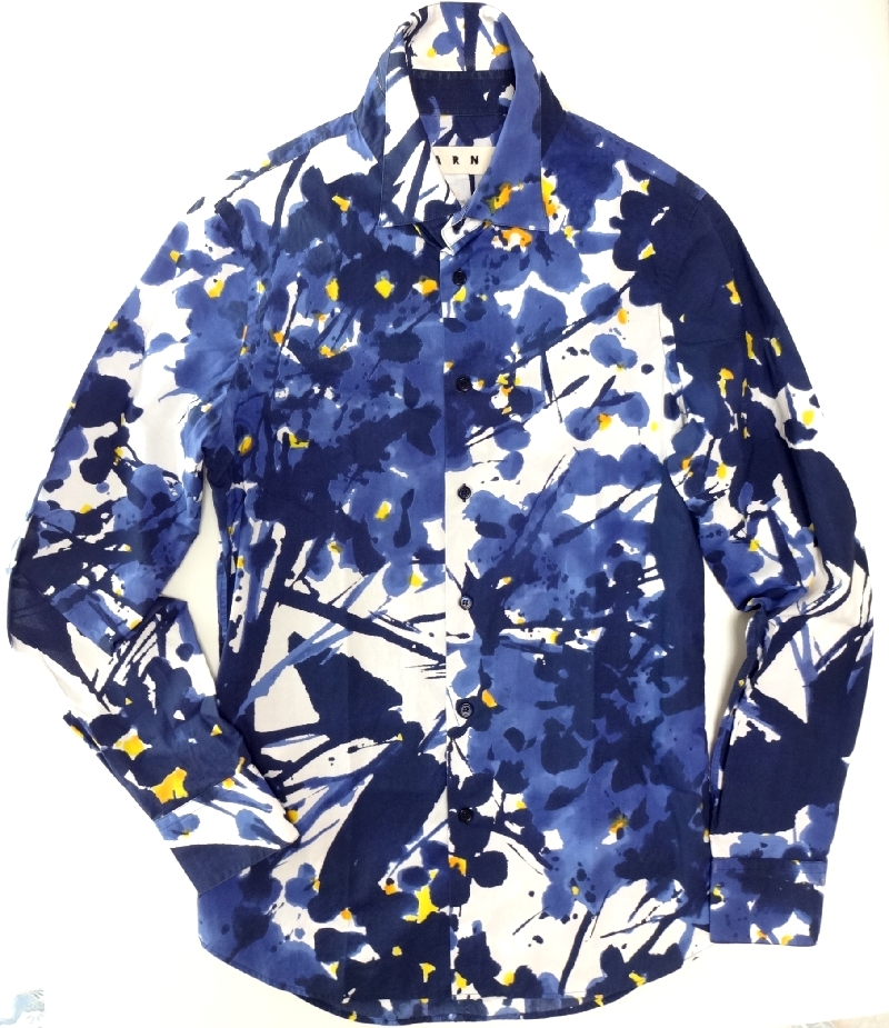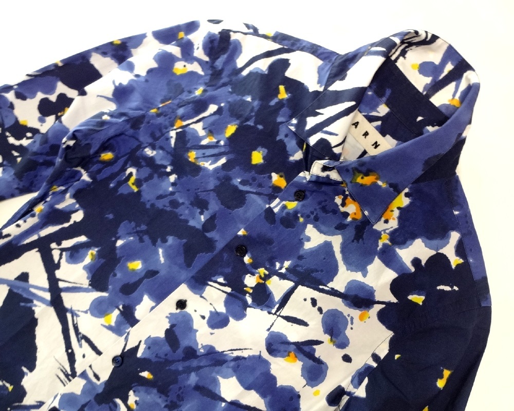 イタリア製 MARNI マルニ シャツ ブラウス メンズ ボタニカル ブルー コットン 44 国内正規品