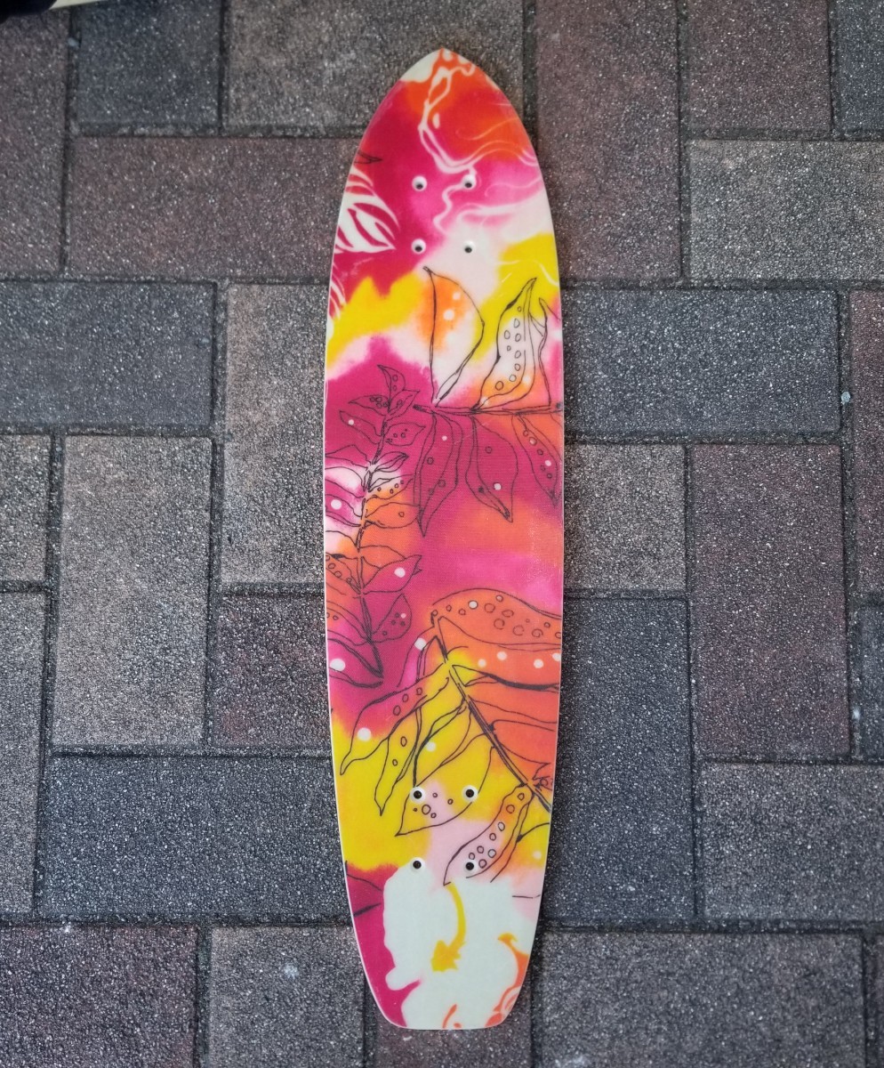カリフォルニアンの匂い漂うヴィンテージデッキです。オールドスクールサーフスタイルで組んで乗りこなすも良し、コレクターの方や室内、ショップのディスプレイに素敵なデッキです。