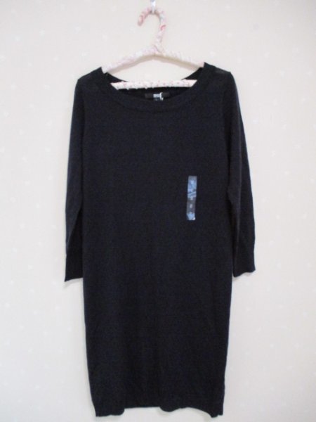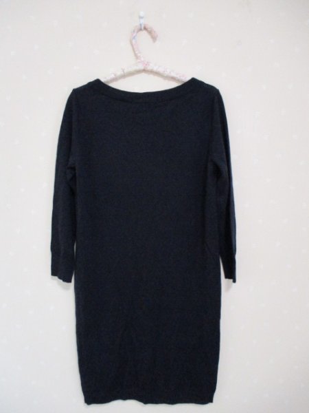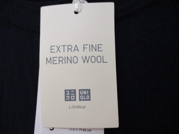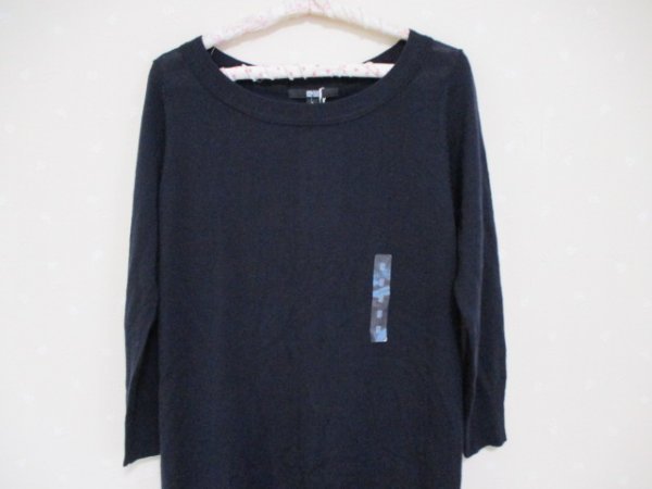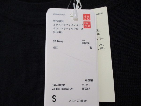 ★ ユニクロ ★ エクストラファインメリノ ラウンドネック ワンピース(七分袖) S ネイビー(31027)レディース