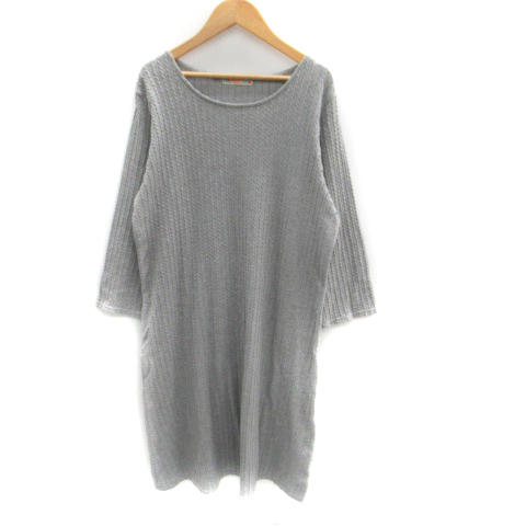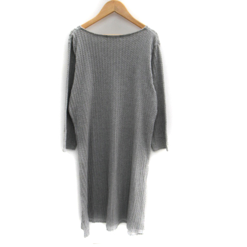 ビームスハート BEAMS HEART ワンピース ミモレ丈 長袖 ラウンドネック 総柄 グレー /SM30 レディース