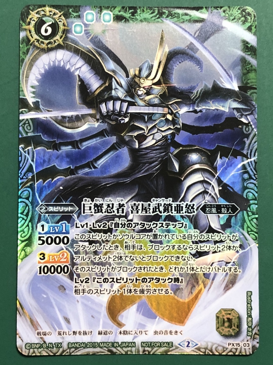 ☆バトルスピリッツ PX15-03 巨蟹忍者 喜屋武鎖亜怒 PRプロモトレカ 緑 4枚 キラホロ仕様