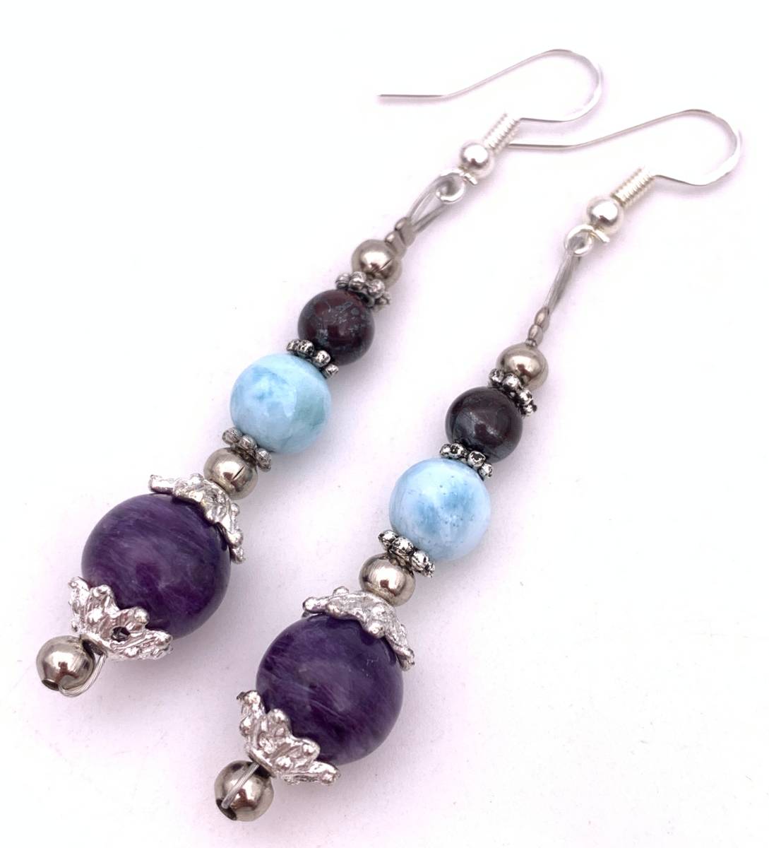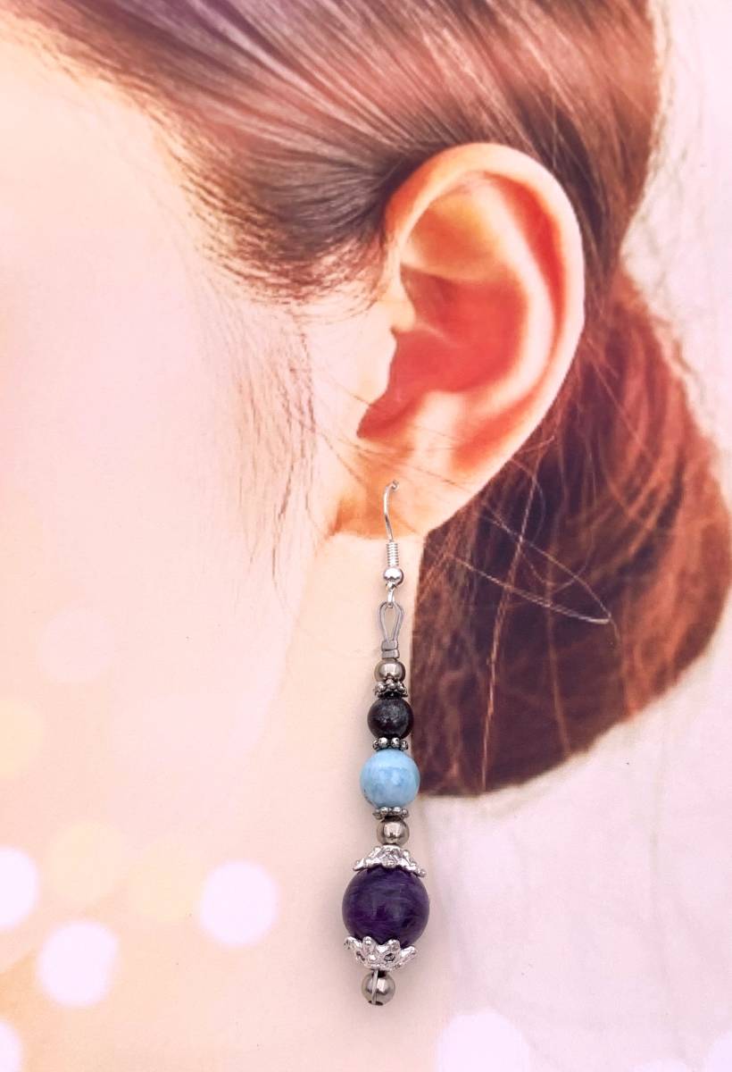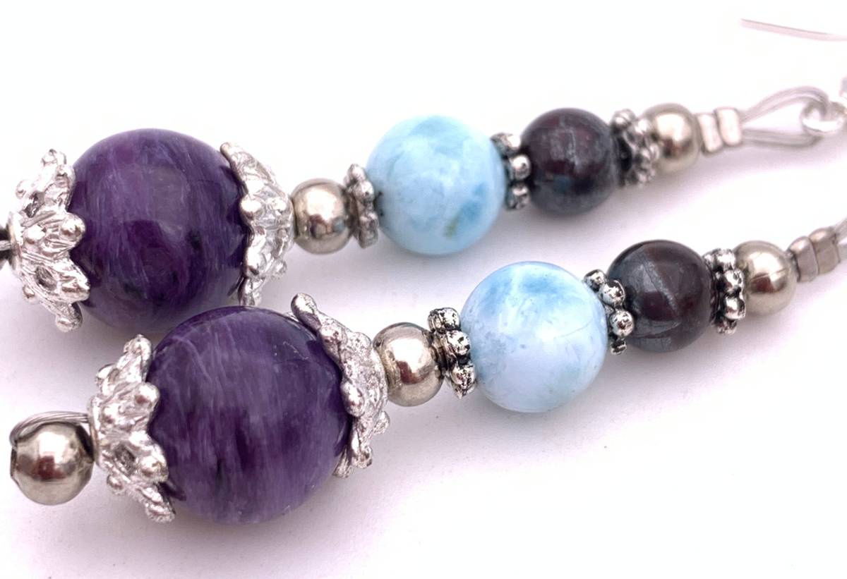 世界3大ヒーリングストーン☆天然石スギライト&ラリマー&チャロアイトのピアス