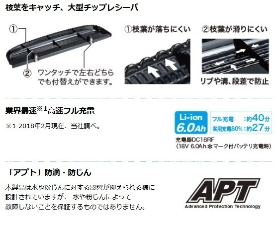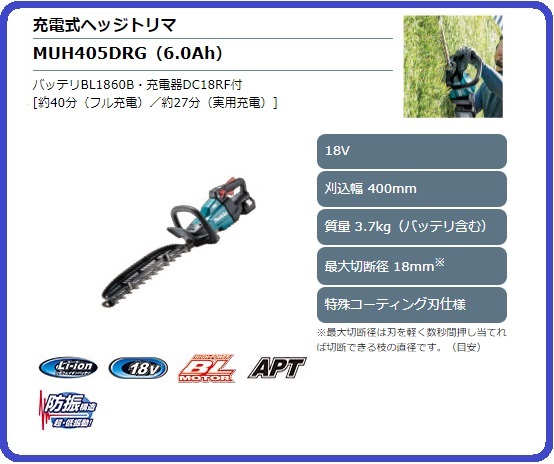 | MUH405D | 約5時間5分 | 約1時間30分 | 約1時間10分 | ブレードカバー チップレシーバ |
