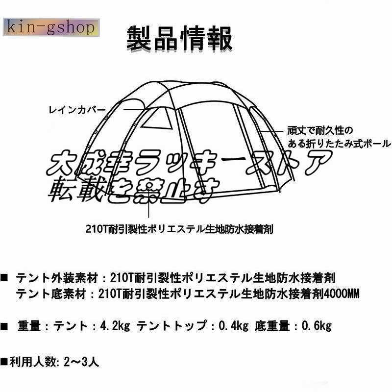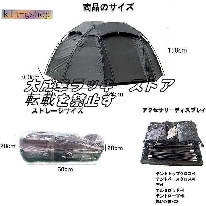 希少新品!テント 大型 外線防止 アウトドア 撥水 登山 ブラックテント 3-4人用 アウトドア用 キャンプ テント ドーム型テント210T 軽量