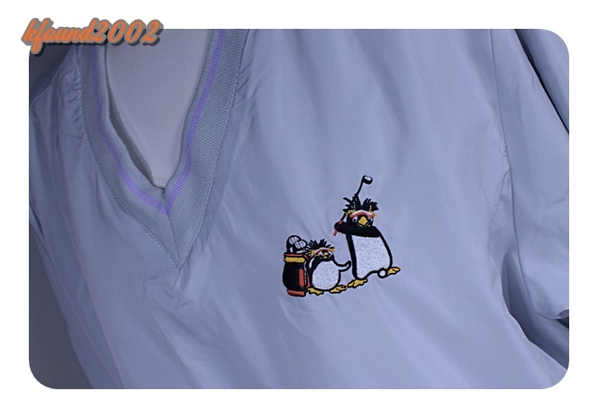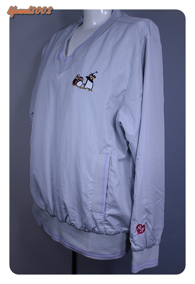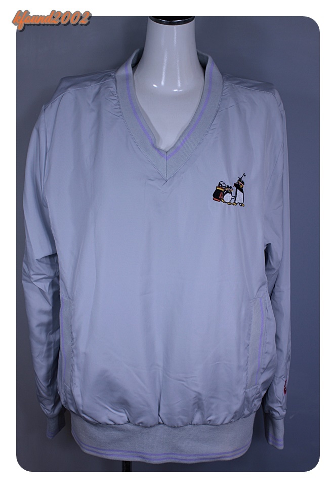 ロッキーアンドホッパーのレディース用ジャケットです。サイズは表記にてLサイズとなります。生地の素材が軽くて暖かく動きやすいスポーツジャケットです。かわいいペンギンのキャラクターと袖口のマークは刺繍です。