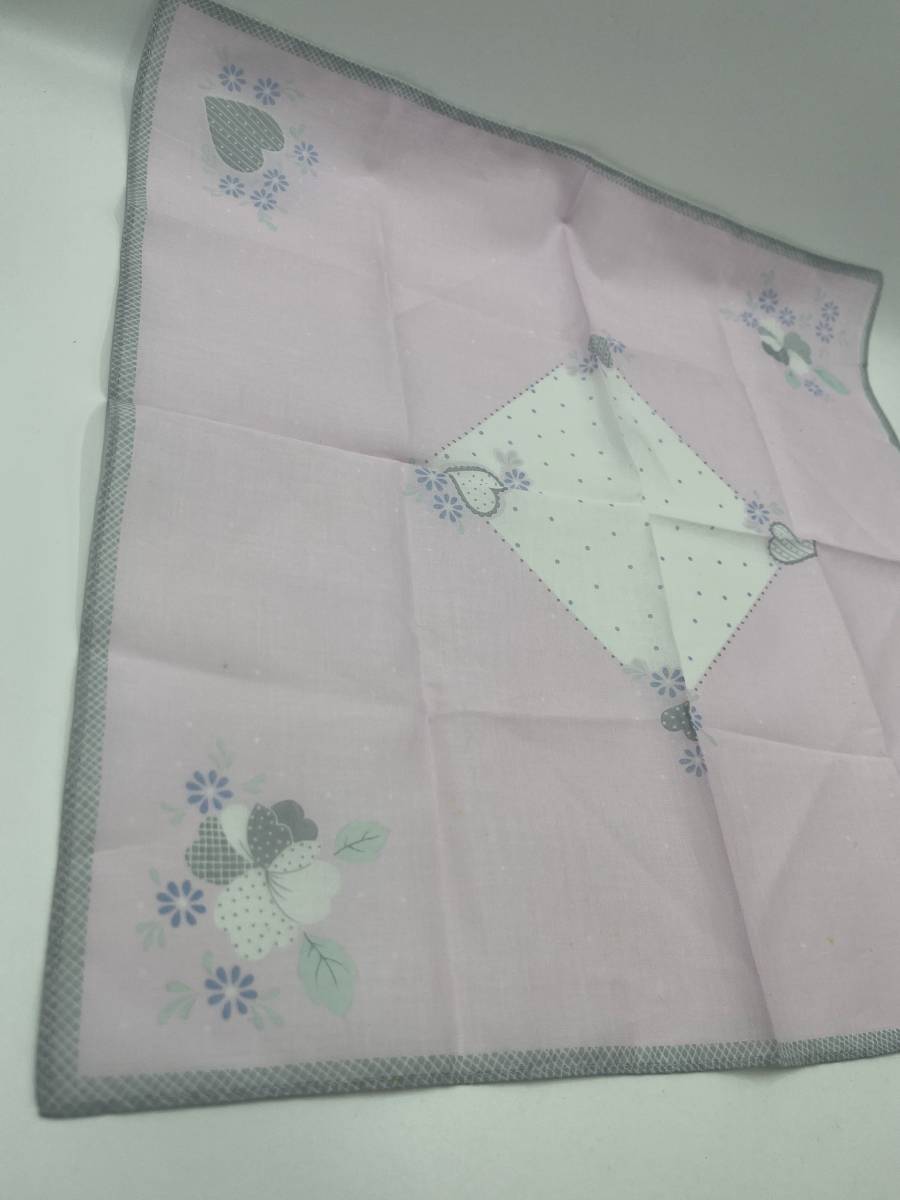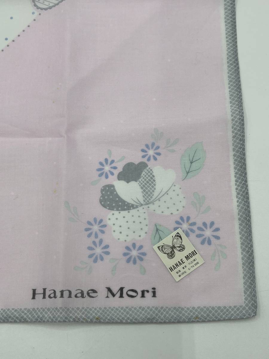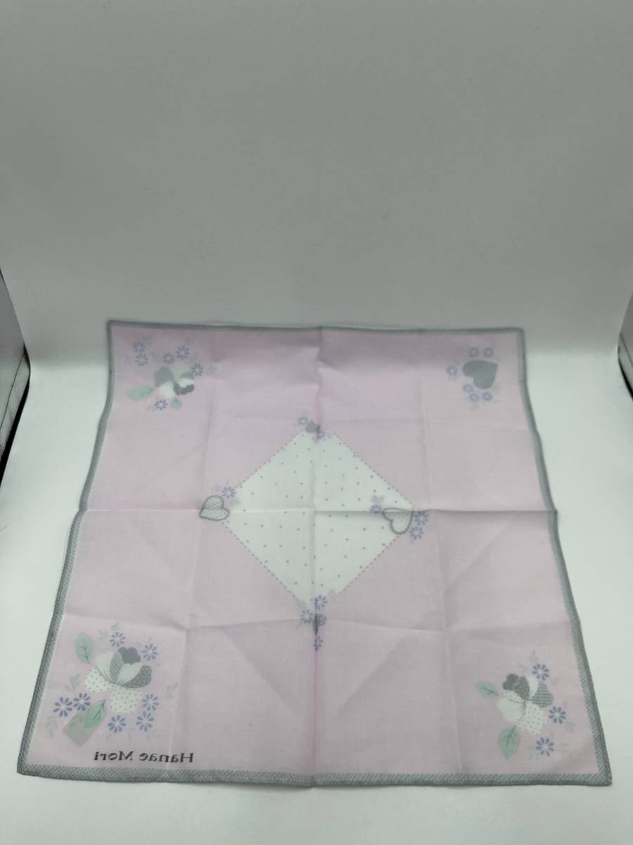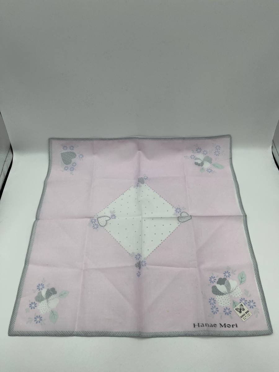 HANAE MORI ハナエモリ ハンカチ バンダナ ライトピンク×グレー 花柄 ハート柄 綿 コットン100% W42 H43