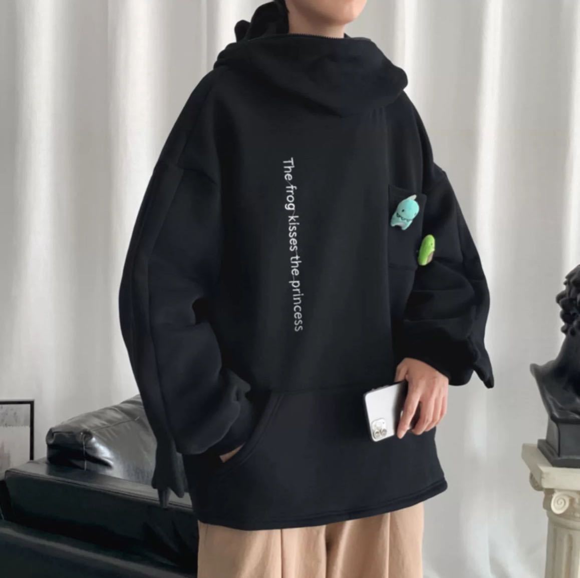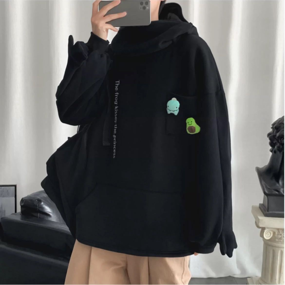 『 パーカー カエル フード トップス ビッグシルエット 長袖 』