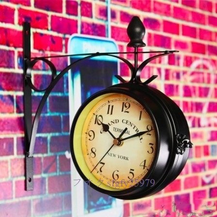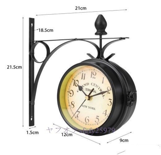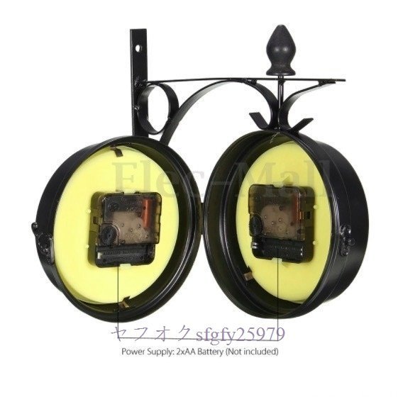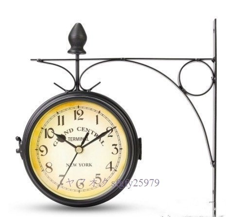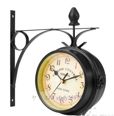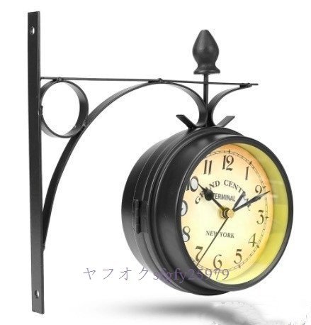 L498☆新品壁掛け時計 両面時計 ステーションクロック レトロ ヴィンテージ アンティーク風 カフェ 店舗 インテリア おしゃれ ブラック 黒