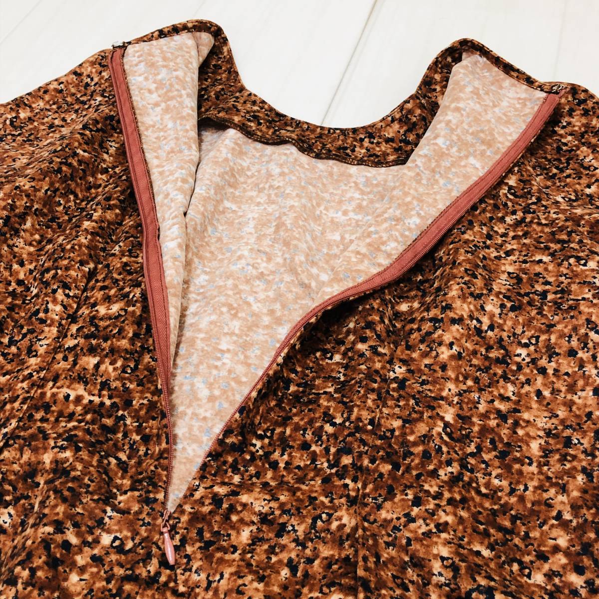 k1843 美品 KFB アーバンリサーチ チュニック 半袖 F ブラウン 総柄 レディース 上品 高級感 華やか おしゃれ エレガントガーリーチック