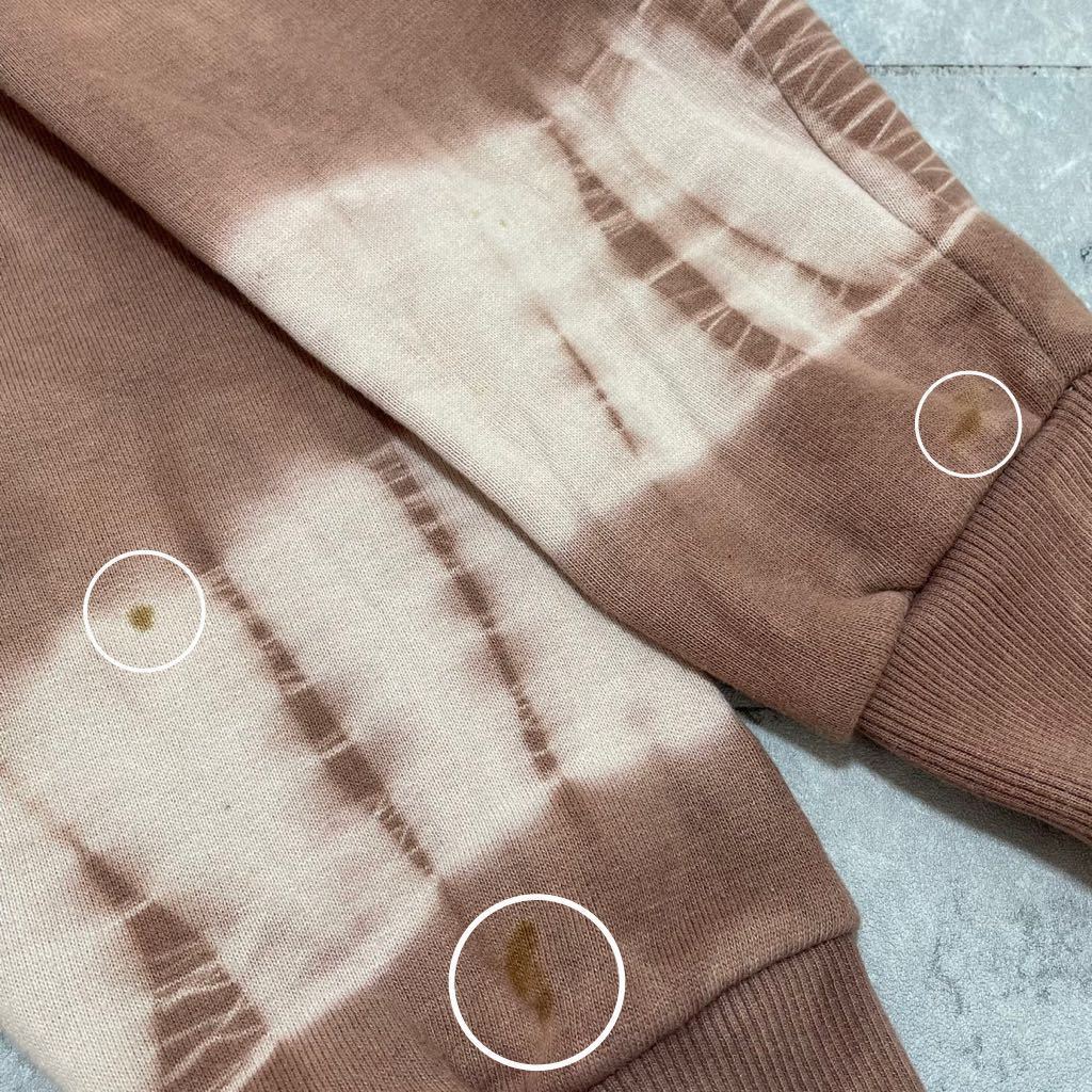 ・両袖裏と前面ボタン下に茶色いシミあり。