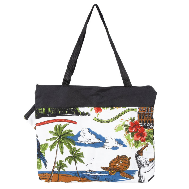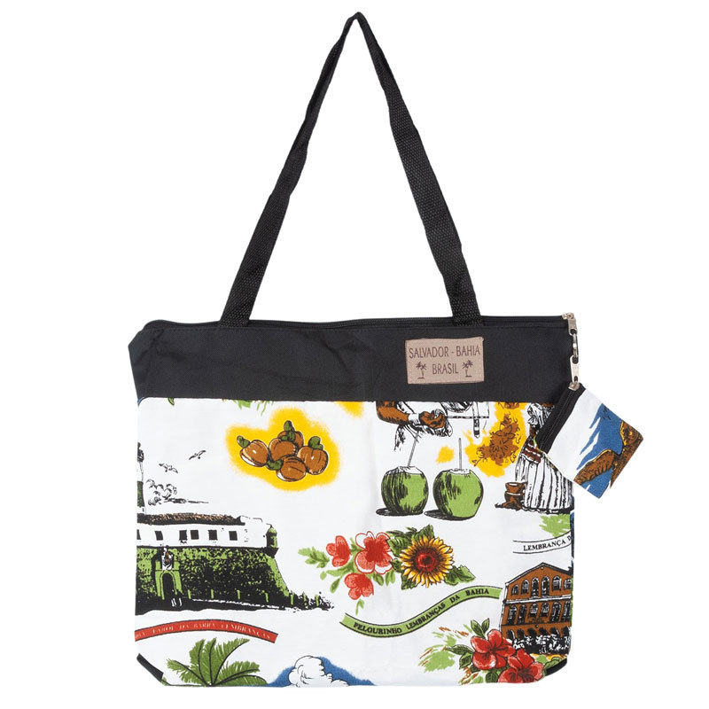 サルヴァドール直輸入!バイーアの風景がオシャレに描かれたショルダーバッグ!ブラジル北東部の街、サルヴァドールの魅力をふんだんに詰め込んだデザイン。ホワイトとブラックのコントラストが素敵でどんなファッションにも合わせやすいカラーです!A4サイズ対応で普段使いしやすい、ファスナー付きが便利なアイテムです!