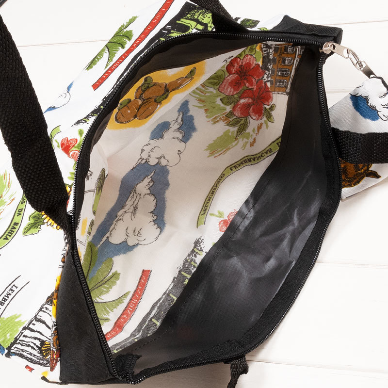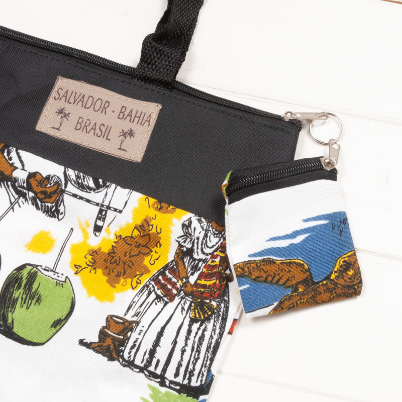 バイーア サルヴァドール柄ファスナー付きナイロンバッグ ミニポーチ付き|ブラック