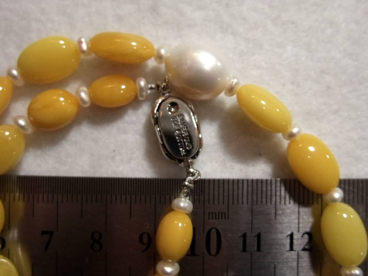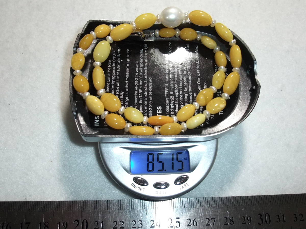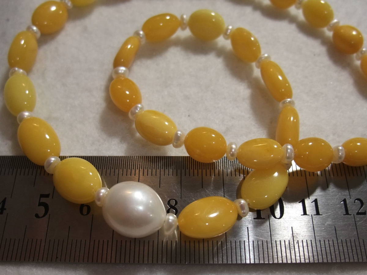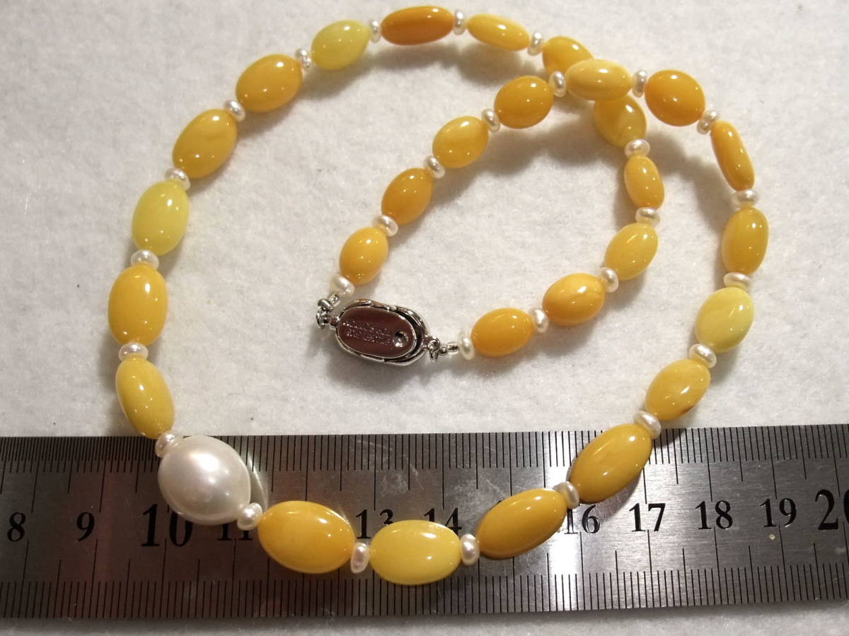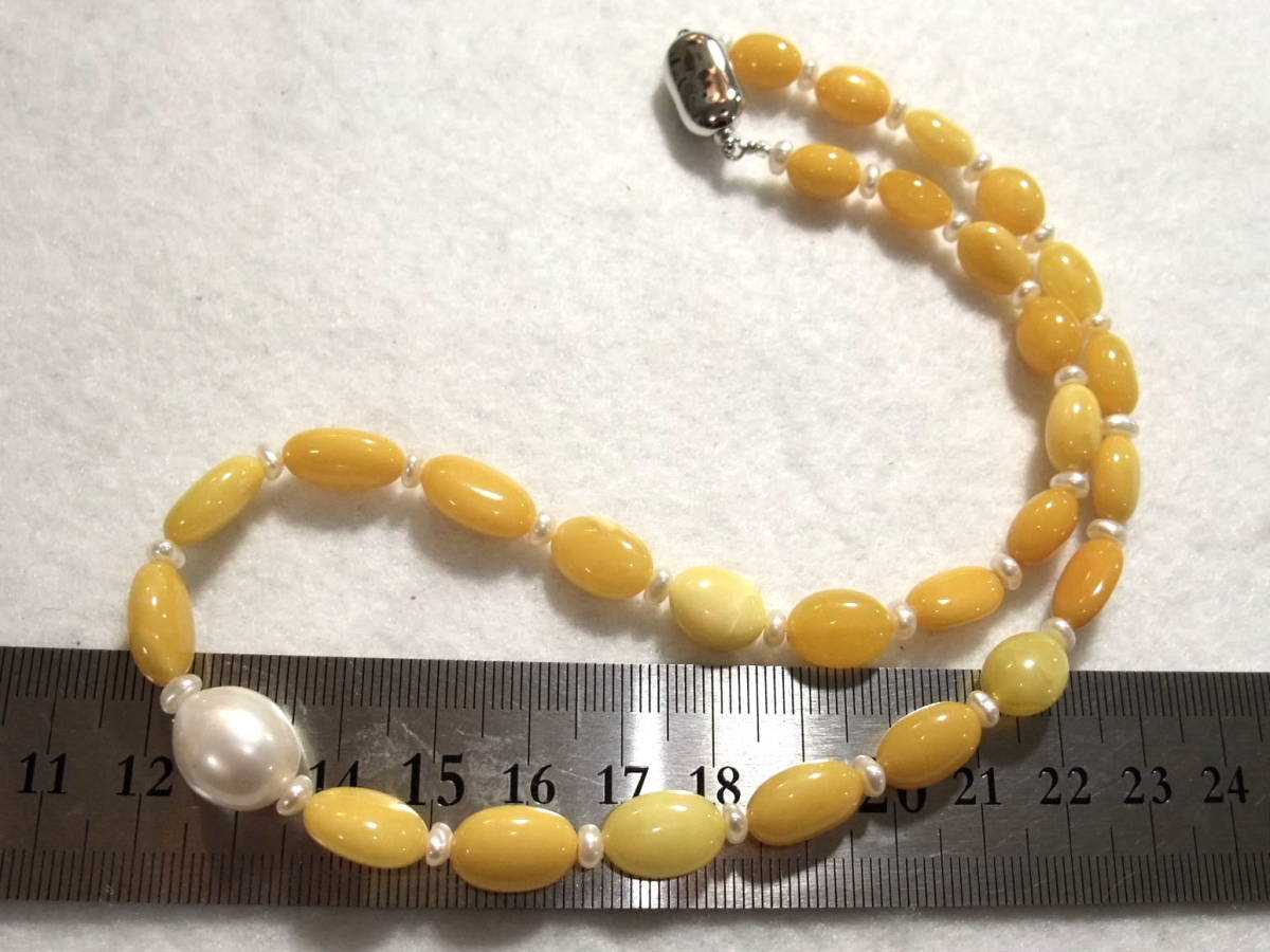 人気!極上ハニカム蜜蝋色!東欧産本琥珀amberと真珠!ビーンズクラスプ高品質ネックレス!金運最強パワーストーン!まとめて大量色々同梱可能NA