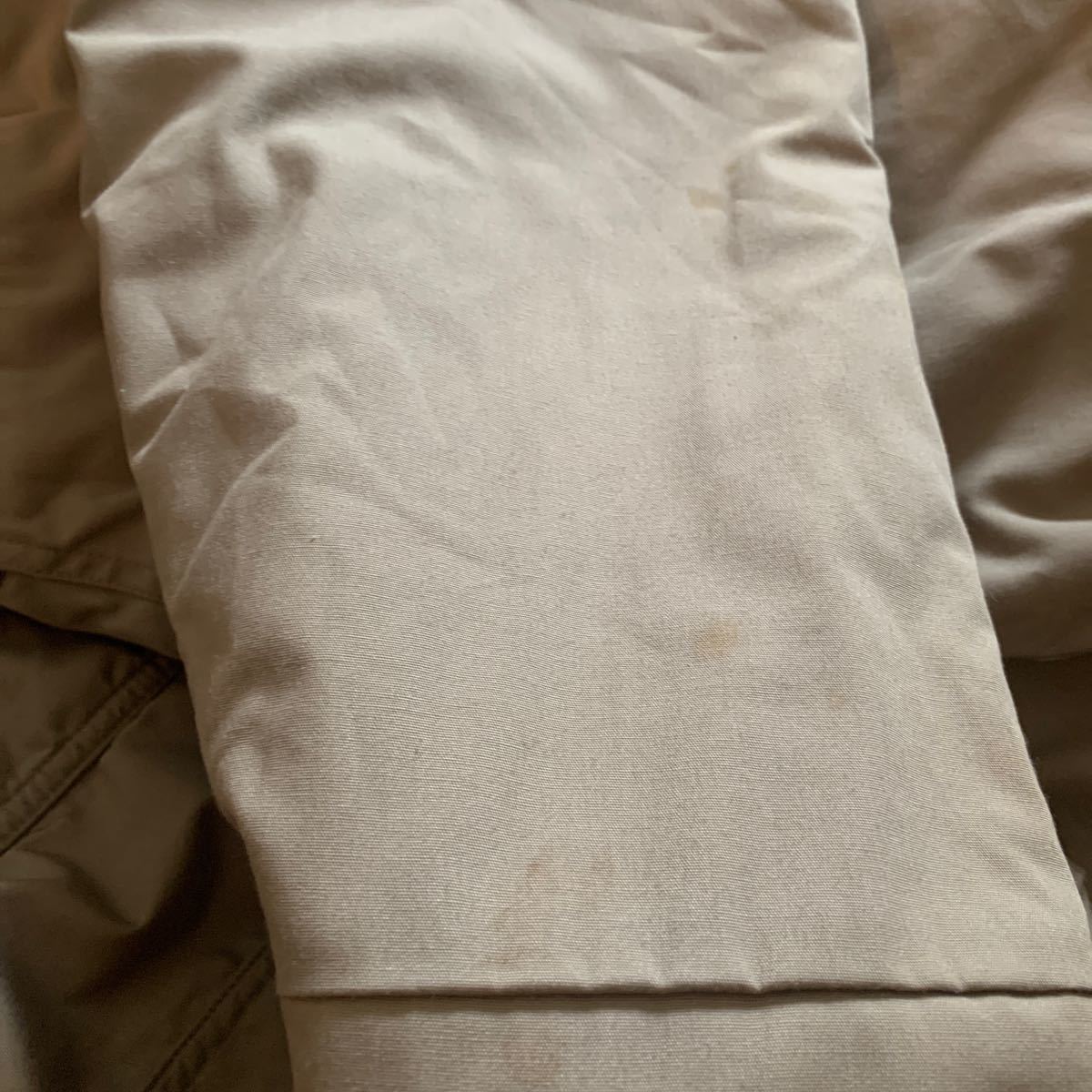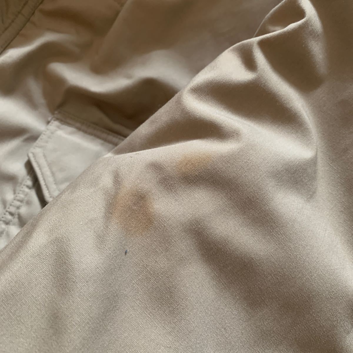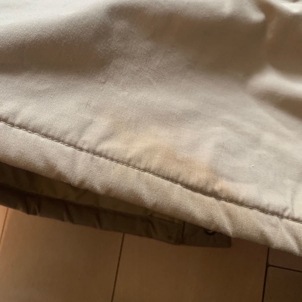 ●状態:裾や腕部等ところどころに茶色に変色気味、写真でご確認ください。クリーニングなどに出せば落ちるかもしれませんがその点はご確認の上ご購入ください。