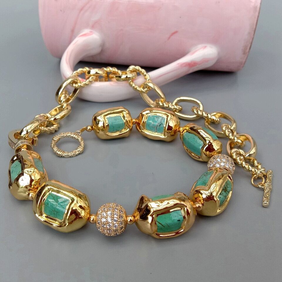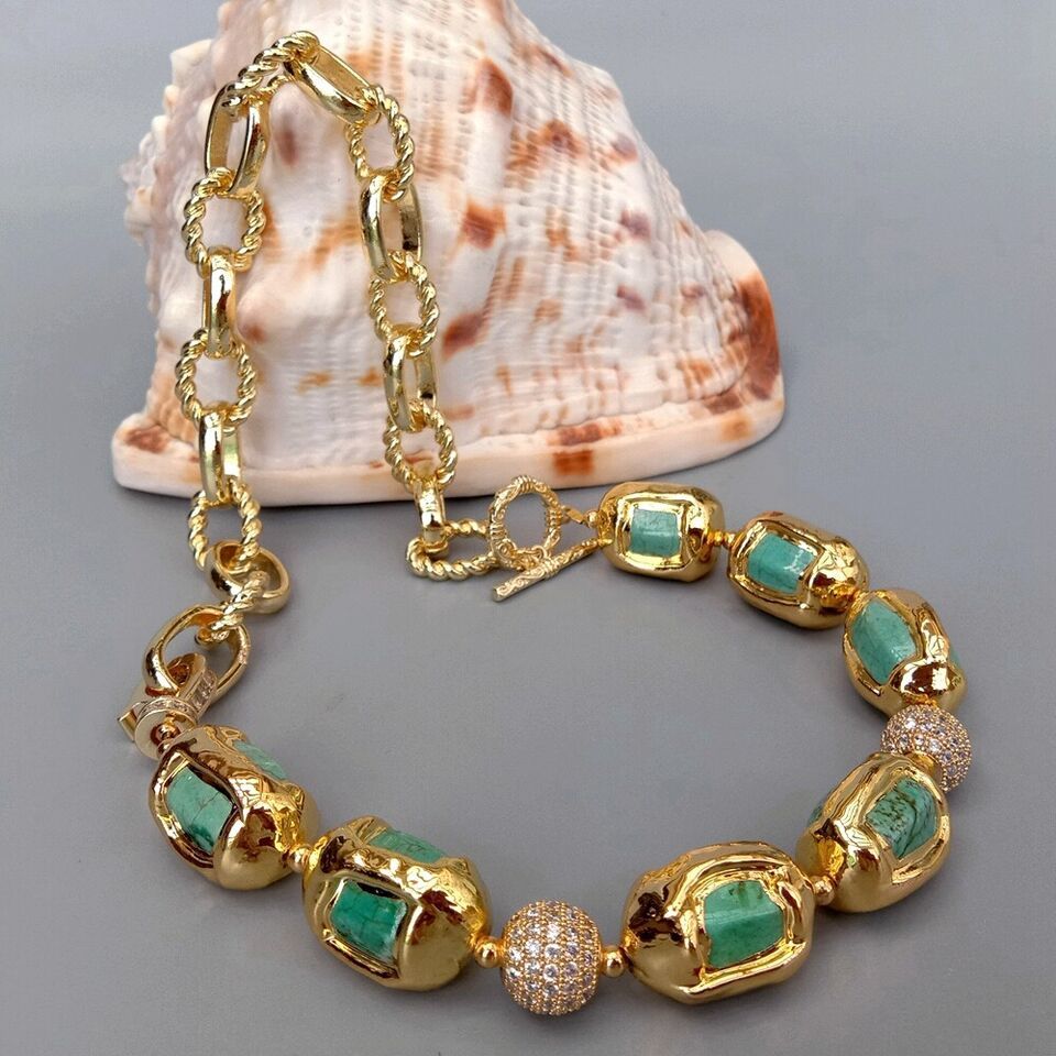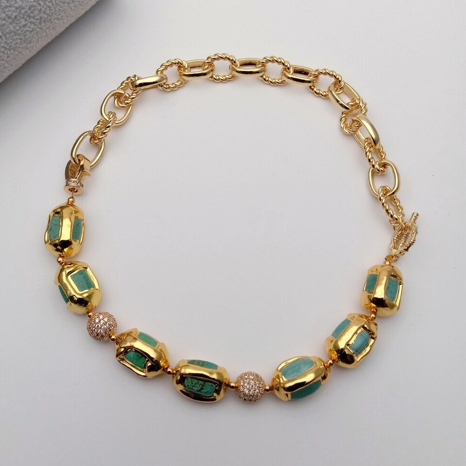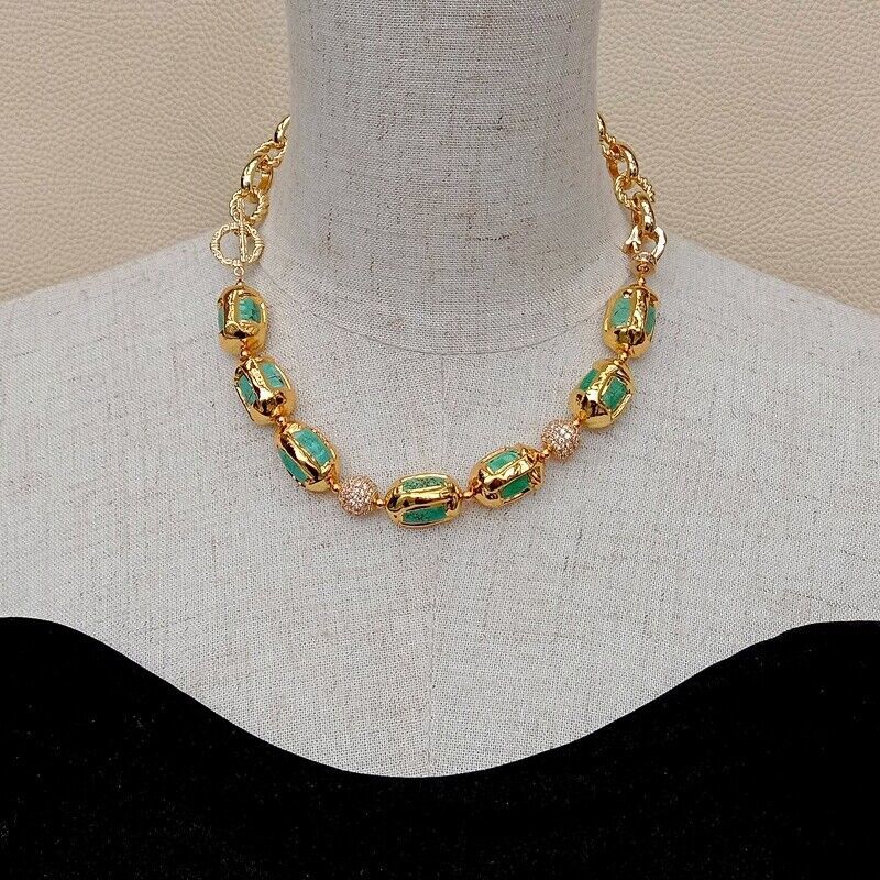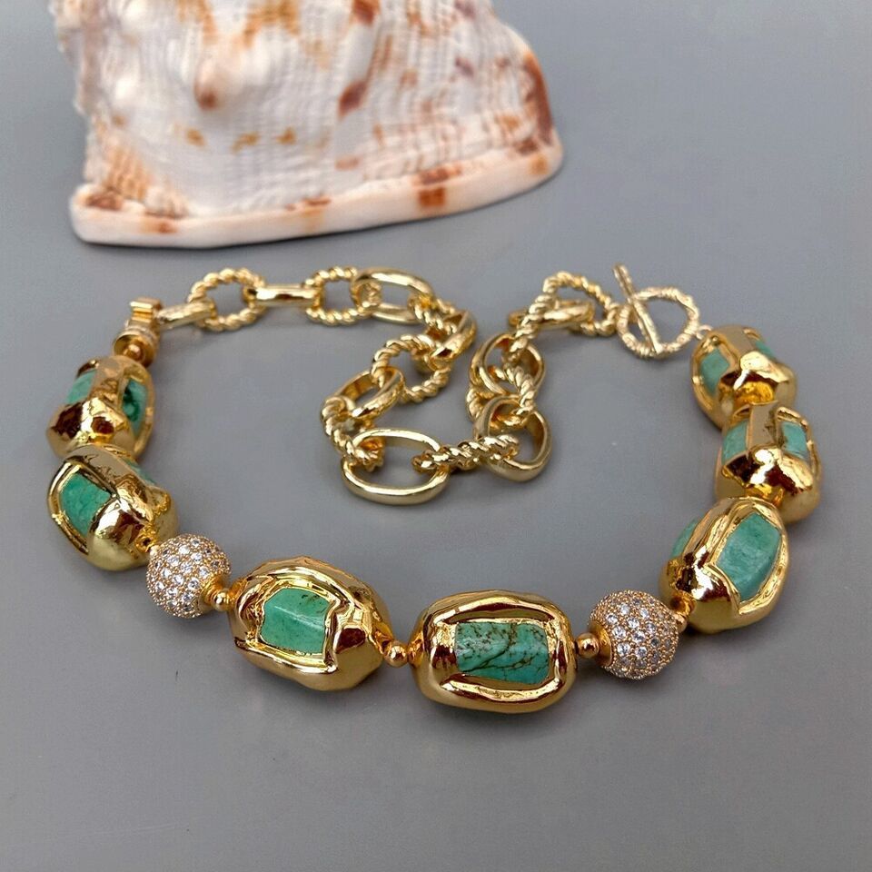 <新品>ターコイズ トルコ石 キュービックジルコニア ゴールド チェーン 16.5インチ ネックレス 結婚式 プレゼント パーティー ギフト
