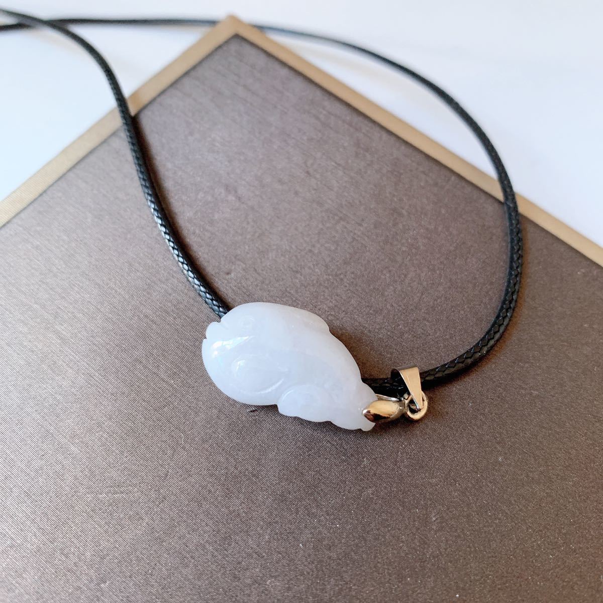 ◇ジェイド(本翡翠)◇ヒスイ◇ネックレス◇ペンダント◇イルカ形 彫刻◇巾着袋付き◇プレゼントにも010P111103