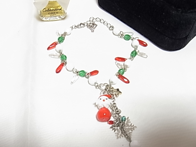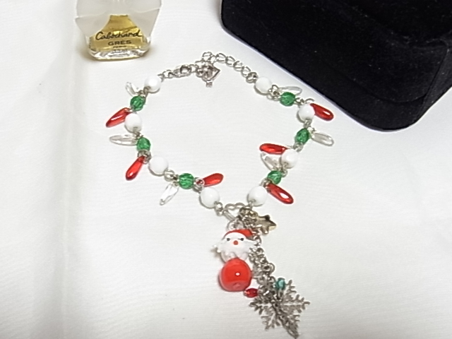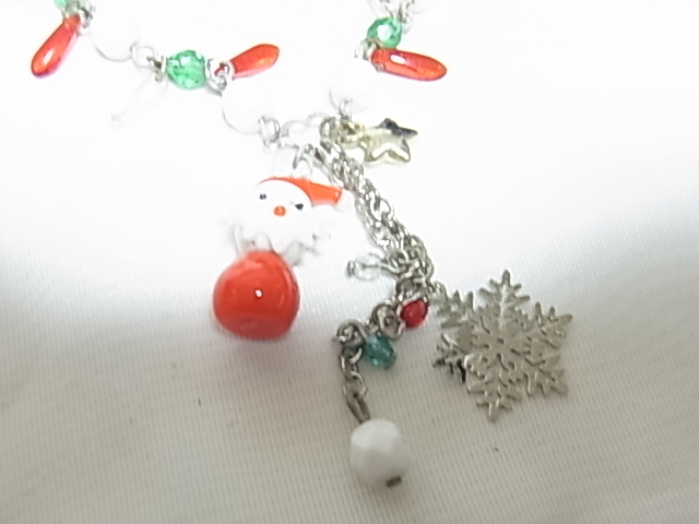 可愛らしいサンタクロース サンタさん クリスマスカラーのビーズストーン Xmas Christmas 何かの刻印入り ブレスレット▲