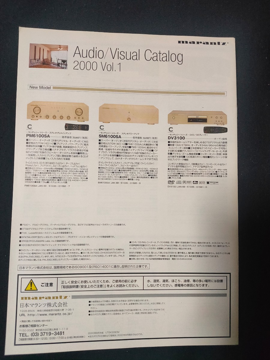 マランツ 2000年8月のオーディオ/ビジュアルカタログ 全8頁になります。
