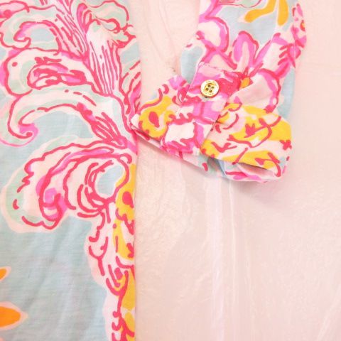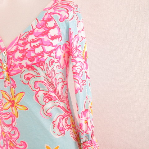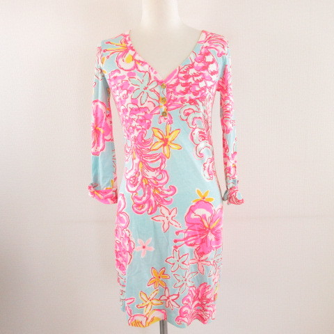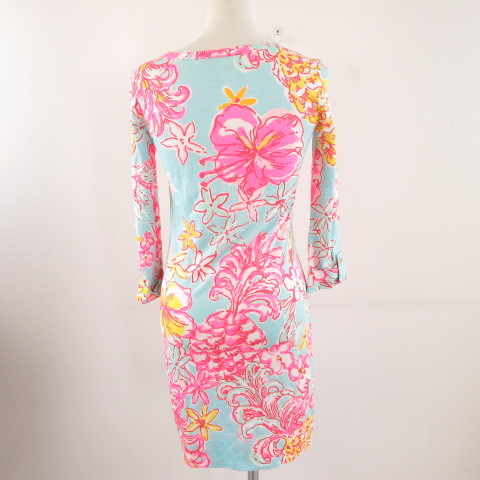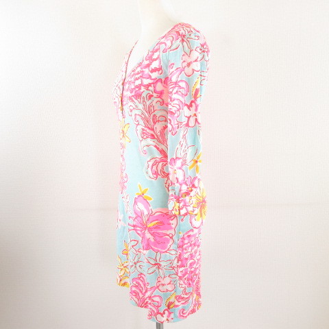 リリーピューリッツァー Lilly Pulitzer ワンピース ミニ 七分袖 花柄 水色 ピンク XXS *A976 レディース
