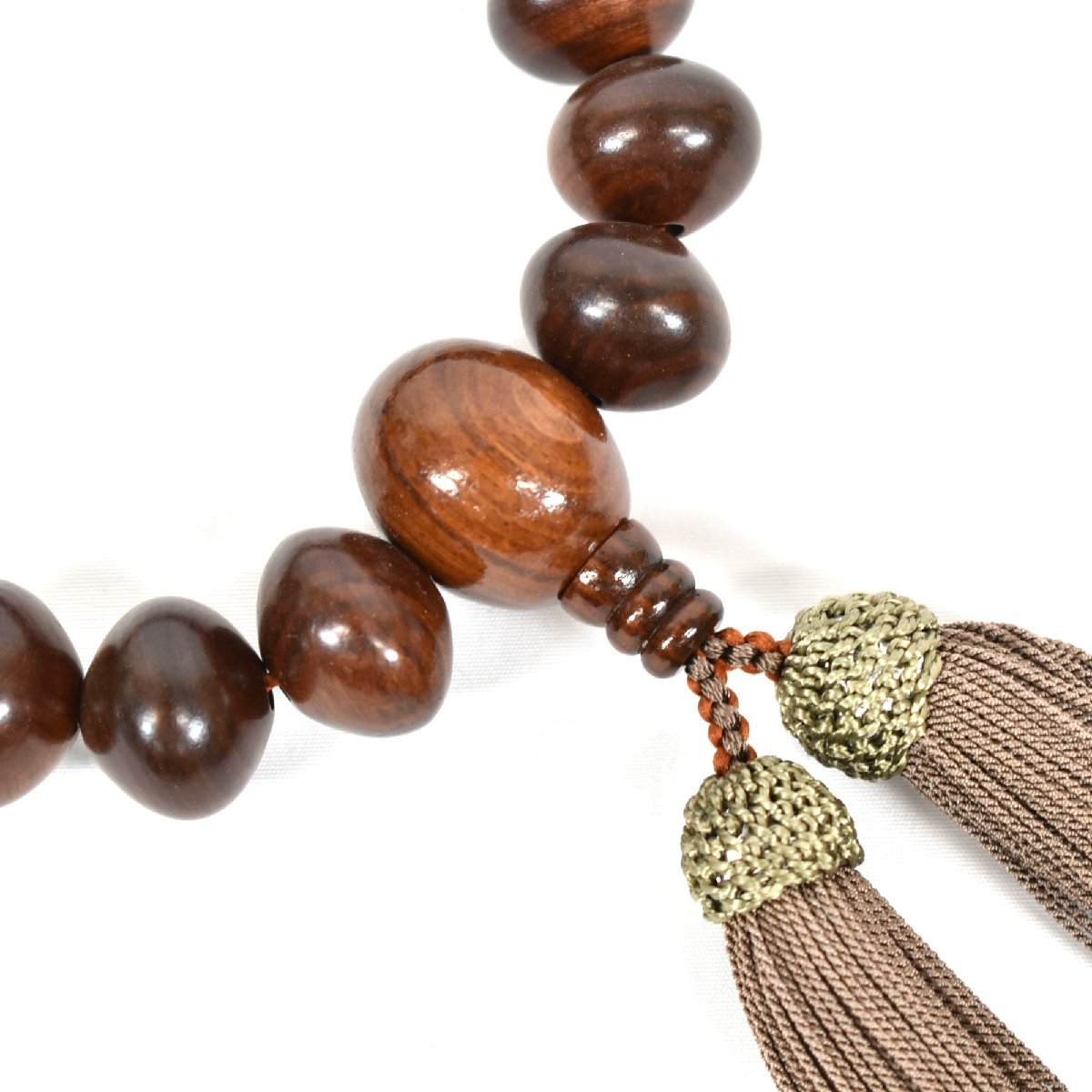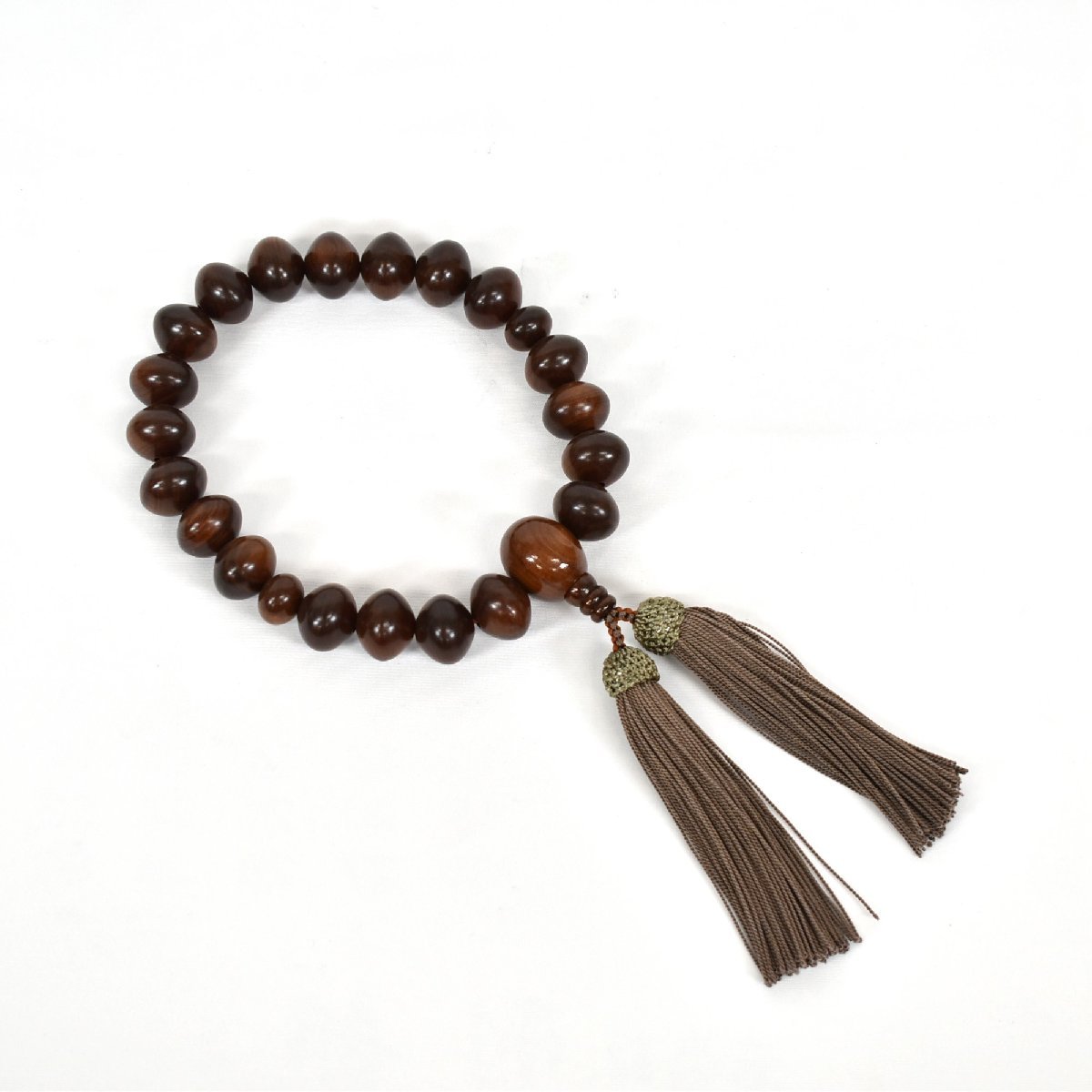 梅檀(梅の木)製のミカン玉(楕円形)のお数珠です。
