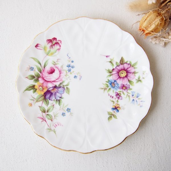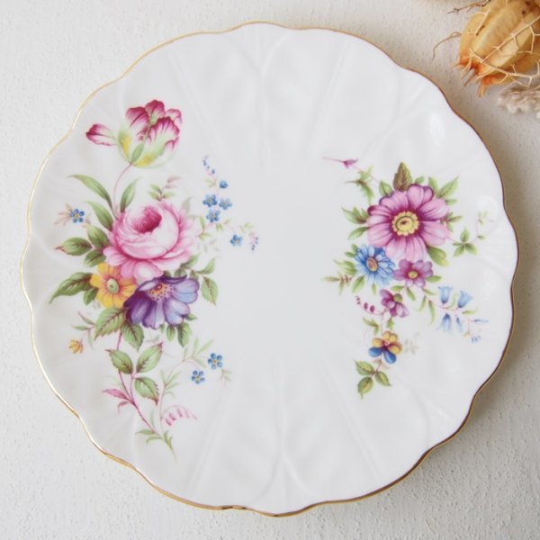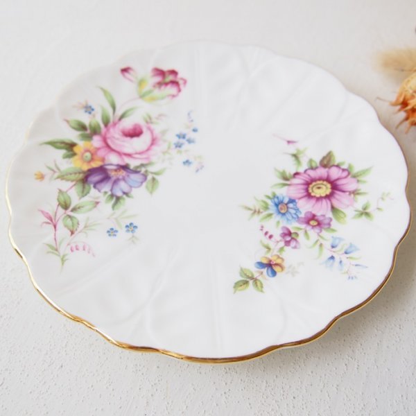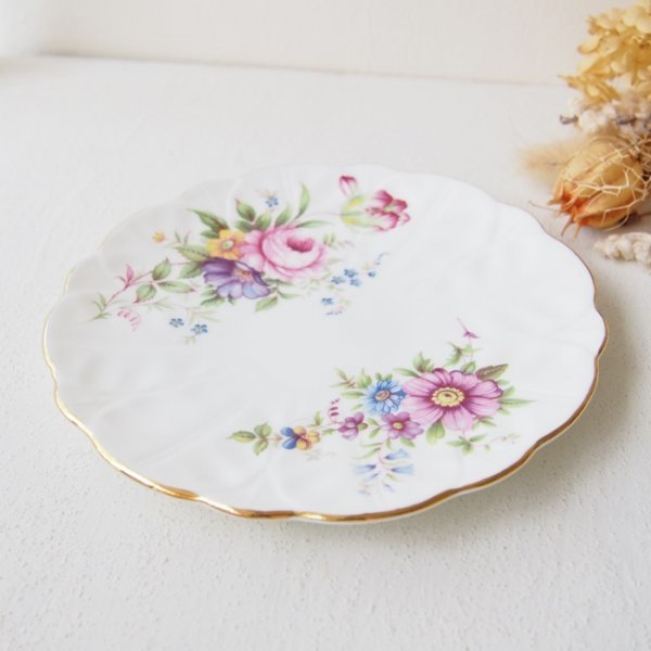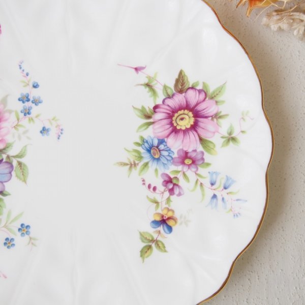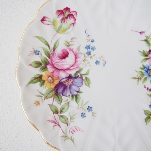 お花模様のプレートです。 ローズやチューリップなどいろいろなカラーのお花が並びとても可愛らしい雰囲気です。 経年の為、多少の小キズ、擦れ、ペイントロスや汚れが見られます。 ■刻印: AYNSLEY ENGLAND BONE CHINA ■サイズ: 直径約16㎝ ※アンティークプレートに関するご案内 長い年月を経て、海を渡ってきた古いお品です。 表記以外にもキズや損傷などがある場合がございますので、ご了承下さいます様お願い申し上げます。 アンティークプレートには、シミ・カトラリーキズ・ヘアライン・練ムラ・貫入・ブラックスポット・ペイントロス・製造時にできる凹凸などや、釉薬がかかっていない箇所がある場合がございます。 なるべく状態良いものを選んでご紹介しておりますが、キズやシミなどはアンティーク品の味わいとしてご理解いただけます様お願い申し上げます。 アンティーク・ヴィンテージ商品には、経年による傷や劣化などがあります。 目立つものはアイテムの詳細に記載しておりますが、説明以外にもキズや損傷などがある場合がございます。 古いものですので、ご理解いただける方のみご入札下さいませ。 他サイトでも販売しておりますので、同時にご注文があった場合は、品切れの場合もあります。その場合は、大変申し訳ございませんが、ご注文をキャンセルとさせて頂きます事をご了承くださいます様お願いいたします。 | |||