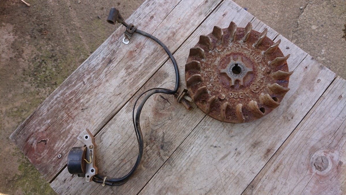 三菱 G510L 4サイクルエンジンのイグニションコイル、フライホイール部品 中古です。