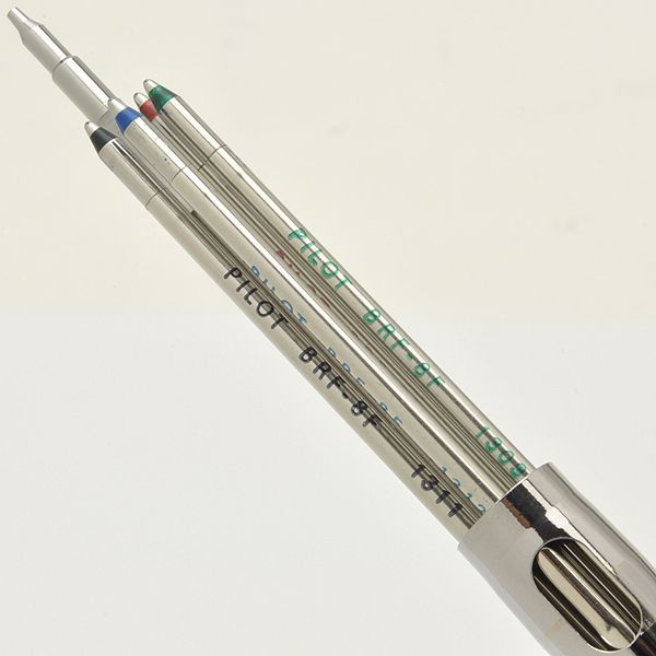5機能を搭載しながら、可能な限り細身に仕上げたリッジシリーズの最高峰モデルです。黒の本体色に金色の金属パーツを合わせ、スタンダードな高級感を持つB(ブラック)とマーブル塗装に銀色の金属パーツを合わせ、スタイリッシュな高級感を持つBGY(ブラック&グレー)、BR(ブラック&レッド)、BL(ブラック&ブルー)の4色展開。ボールペン4色(黒・赤・青・緑)、シャープペンシルを細身のボディに搭載し、スマートに持ち歩くことができます。