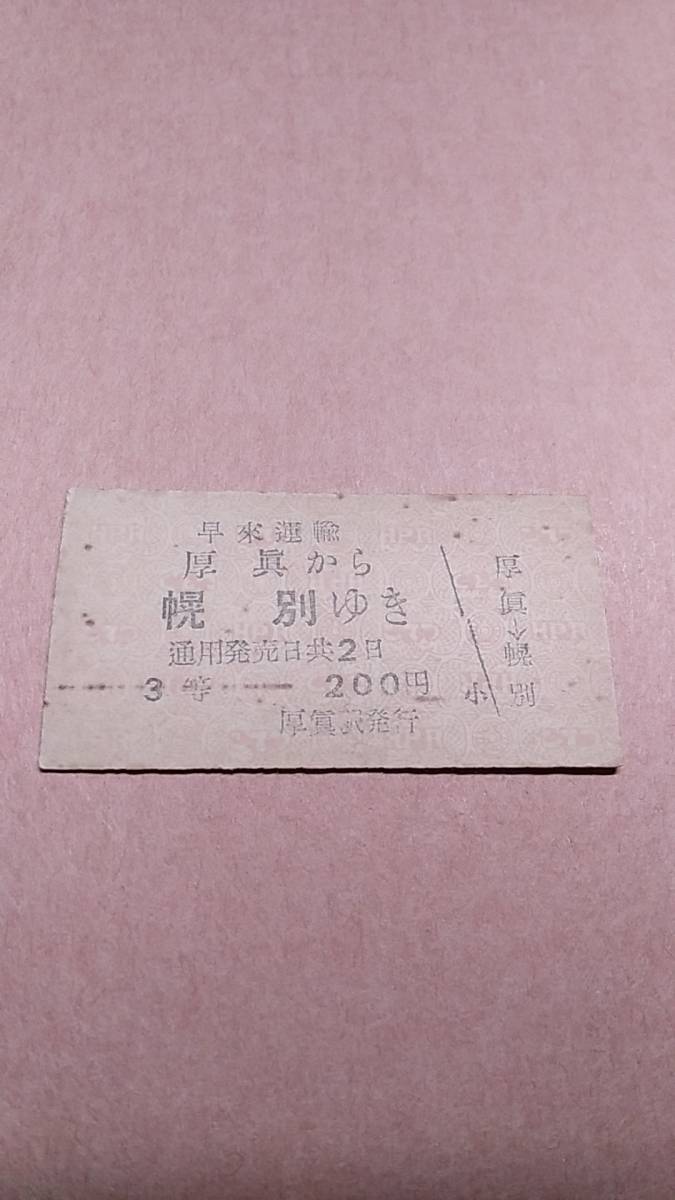 早来運輸 厚眞から幌別ゆき 3等 200円 厚眞駅発行