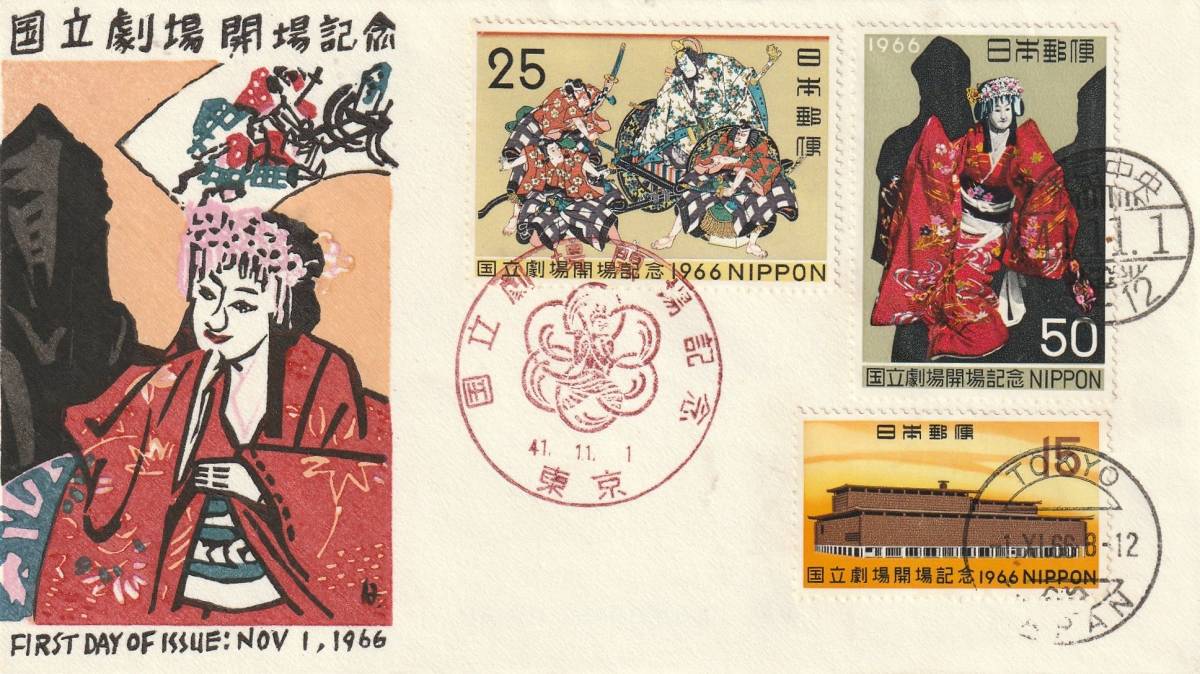 FDC 1966年  国立劇開場記念  15円25円50円3消し   銀座わたなべ