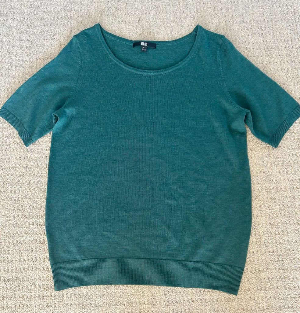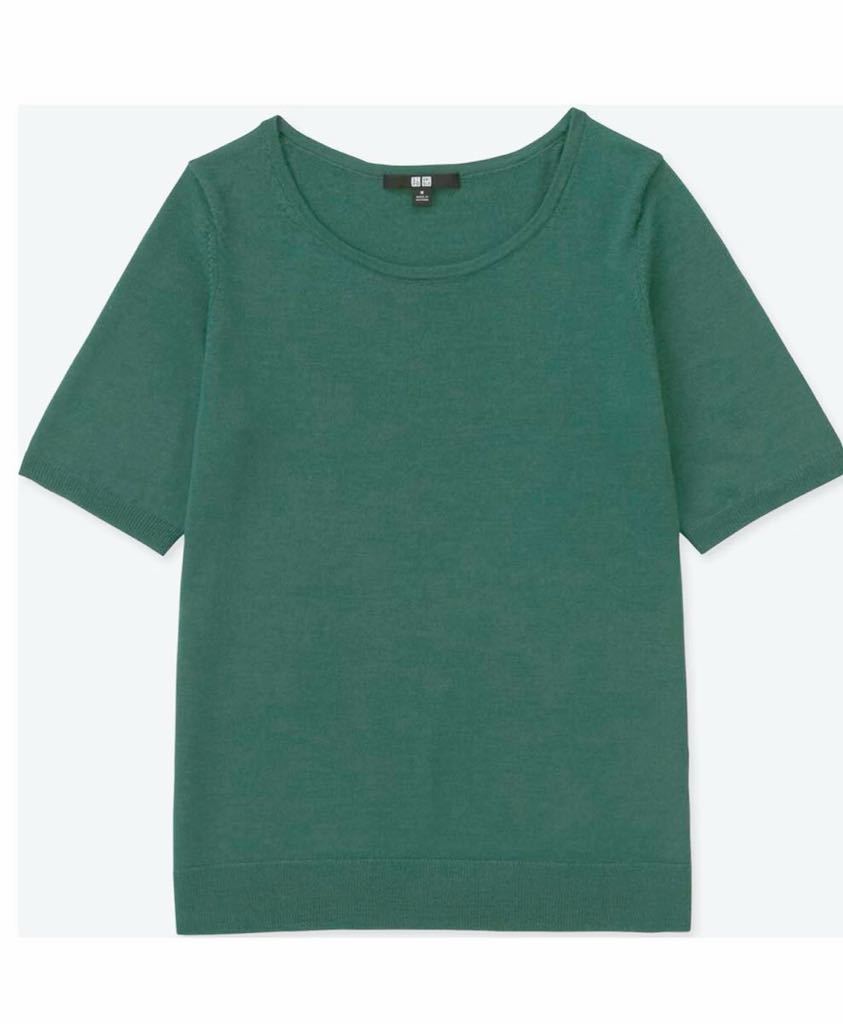 ユニクロのエクストラファイン メリノクルーネックセーター 5分袖です。