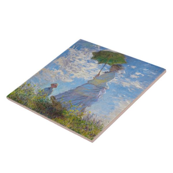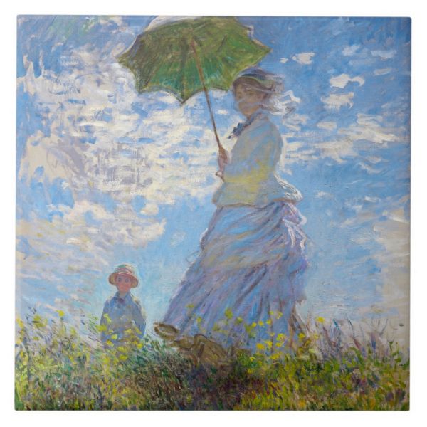 フランス印象派を代表する画家、クロード・モネ の描いた『 散歩、日傘をさす女 』をデザインして高度な特殊加工で焼き付けたフォトタイルです(日本国内の工場で美しく丁寧に焼き付け加工しています)。