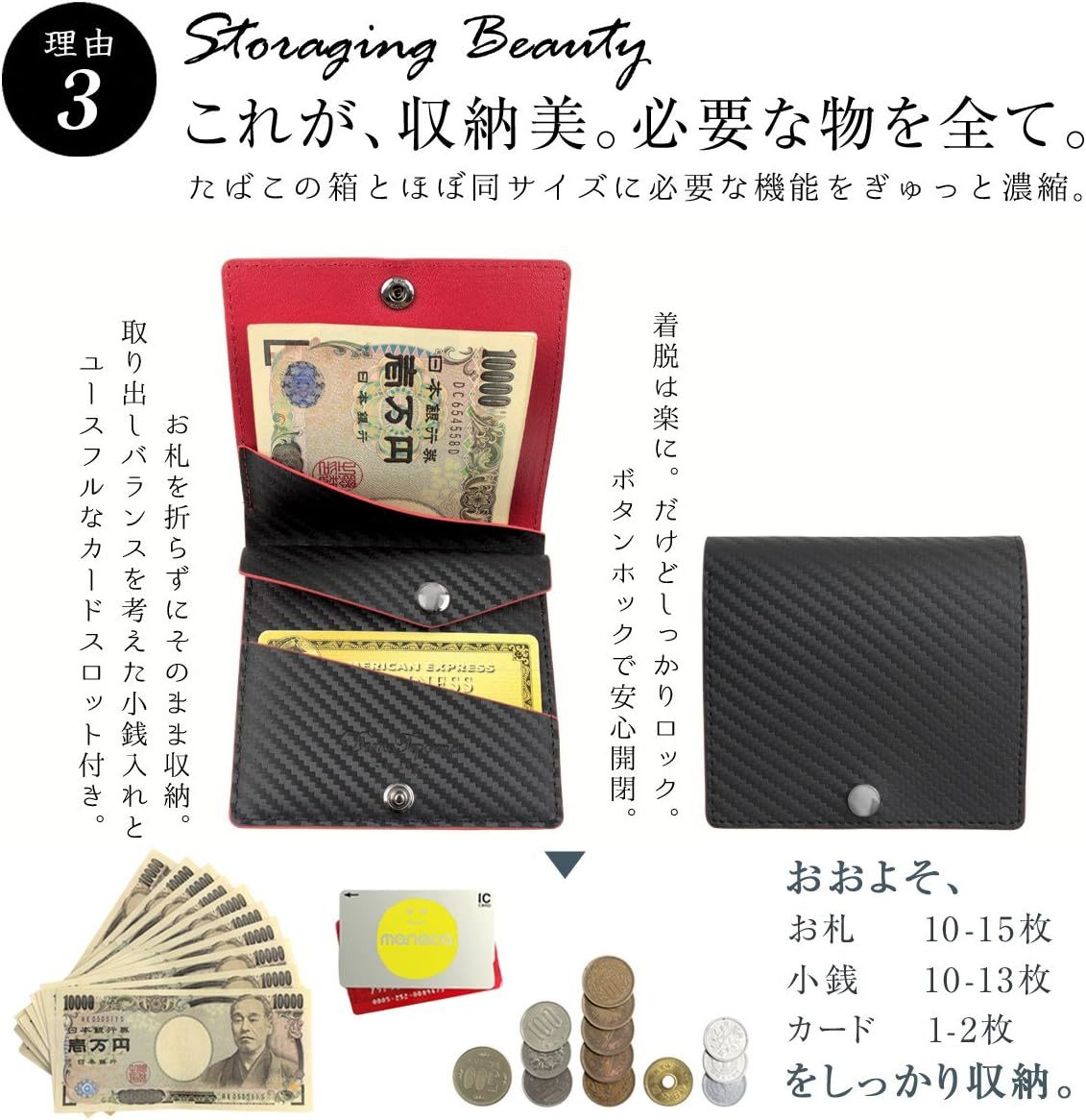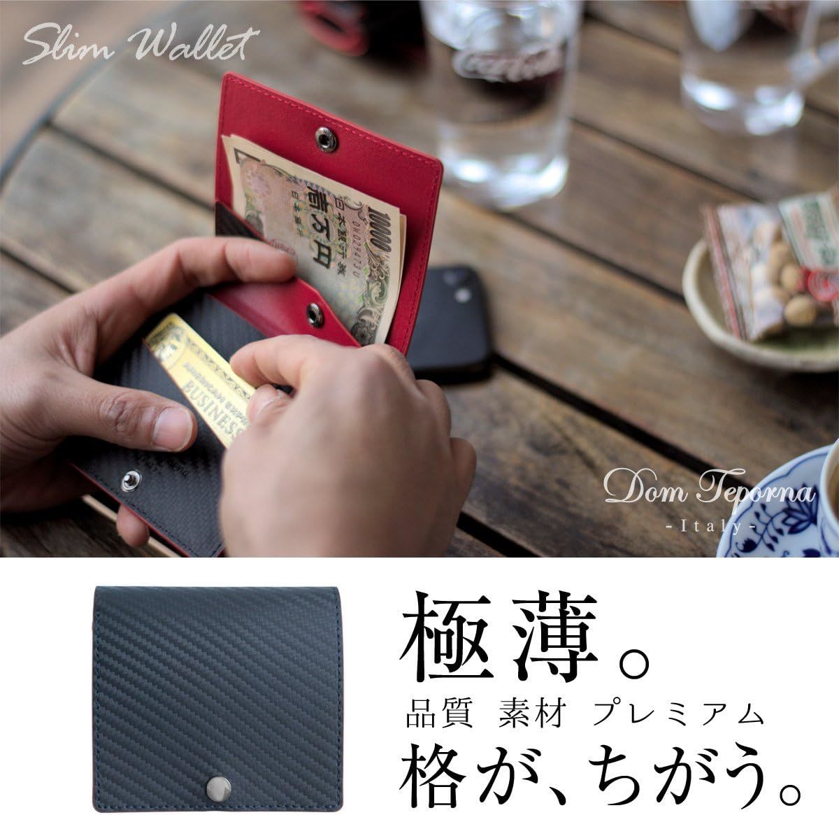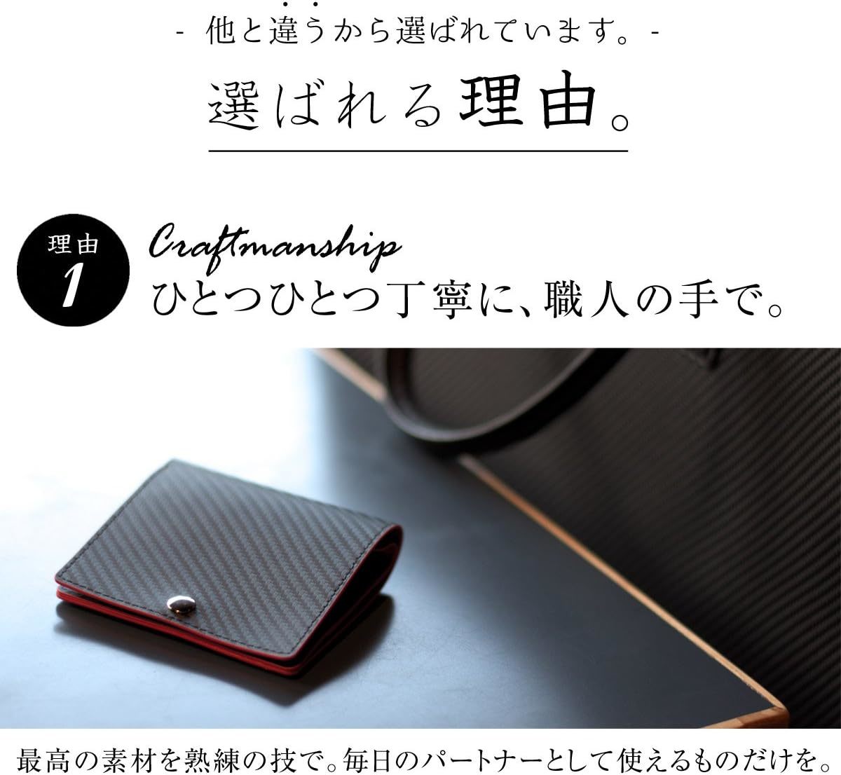 手仕上げ極薄二つ折り カーボンブラック 小銭入れ カード入 お札入 キャッシュレス エイジング 大人感 一粒万倍日 お洒落 高級 本革 財布1