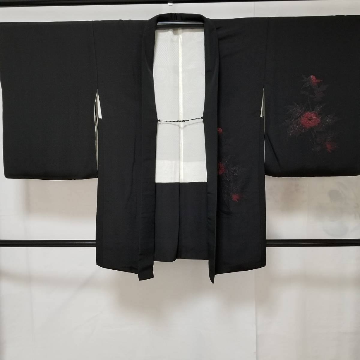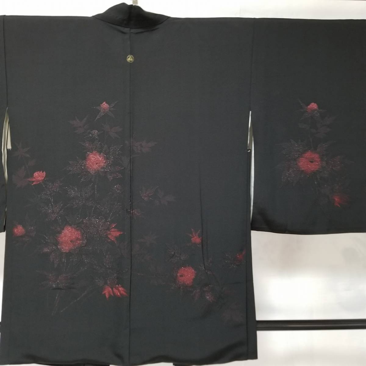 *手縫仕立て品 *中古品 *着用感ナシ *訳有品 *石製 羽織り紐 付き「美品」 {訳有} ☆表地は美しい状態ですが.「羽織裏地*正絹*紋綸子地*白地*横段の中に市松.菊花」地紋に.薄黄色の糊シミがうっすらとございます {紋} ☆金糸*縫い紋*一っ紋「丸に三ッ盛亀甲に花菱」**美品 {生地} ☆正絹 十日町織物 駒無地 意匠縮緬地 ☆羽織重さ 約590g {地色} ☆真黒色地 {模様} ☆「黒」「臙脂」「ラメ」糸での暈し織のボタンの花 {寸法} 羽織丈 {肩から裾まで} 約82cm 裄丈 約63cm {袖付け縫い代 袖側 約1.5cm 身側 約2.5cm} 袖丈 約53cm 袖幅 約33cm 前幅 約18cm 後幅 約28cm (発送方法) ●大阪から ゆうぱっく.おてがる配送 ◎消費税はお預かりいたしております ◎t6227jp 桐輪 「呉服の桐正」でも色々と出品しております** {注意事項} (注意事項 必ずお読みください!) ★基本的に土、日、祝日、ゴールデンウィーク、お盆、年末年始はお休みさせて頂いておりますので、ご連絡が遅れる場合もございますので、ご了承ください。 ★どうぞ自己紹介欄も、是非御覧になって下さいませ。 ★落札後にヤフーから届くメールに、メッセージを記載しておりますので、そちらも必ずご覧下さいませ。 ●当方、ストア出品ではなく、一日中パソコンに向かっておらず、ご連絡は夜になる事が多いです。その点御理解の上、ご入札下さい。 ●お急ぎの場合など、到着希望の日にちが特に近い場合、ご要望にお答えできかねる場合もございます。もちろん、出来る限り、早急に対応はさせて頂きますが、 その点は、何卒ご了承下さいませ。 入札前に、発送が間に合うかご質問頂けるとありがたいです ★★基本的に返品、クレームはお受け致しておりませんが、万が一、商品に不都合(大幅な寸法間違い 記載以外の着用不可能な位の、大きなシミ、傷みなどの見落とし)などがございました場合、まず、取引ナビにてご連絡下さいませ。 迅速に対応させて頂きます。 ただし ●商品がお客様の元に到着後、1週間以上経過したもの。 ●お客様側で加工など、手を加えた物。 ●お色目が、思っていたものと違っていた、または、思っていた感じと違っていた。 (画像はできるだけ実物に近い色で写るように努力していますが、素人の撮影ですので、どうしてもPCによって多少違ってくる事があります。 出来るだけ、分かりやすいように説明は入れさせて頂きます。分かりにくい場合、ご質問下さい。) 以上につきましては、対応出来ませんので、ご理解下さい。 ★複数商品の落札予定のある場合、ご連絡頂きましたら、1週間程でしたら、お取り置させて頂きます。 お気軽に、お申し出下さいませ。 ★送料は、1個で発送が無理な場合は、こちらよりご連絡させて頂きます。 | |||