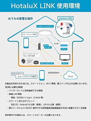 HotaluX LINK・白 スマート化アダプター HX-LINK01・・Size:スマート化アダプターStyle:HotaluX LINK・Alexa対応 スマート家電リモコン お部屋の家電を快適にコントロール。・ホタルクス製、NECライティング製LEDシーリングの取付アダプタを交換することで便利なIoT対応になります。天井から「smart」を発信して快適生活 日々の暮らしをお手伝いするスマート家電リモコン。あなたのお部屋の家電を思いのままに操作するリモコンが天井に。 例えば、照明を点灯/消灯、エアコンでお部屋の室温を調整、外出先から状況確認など、できることはたくさん。 取付方法は、シーリングのアダプタを交換するだけの簡単施工。設置後は、シーリングのカバーが目隠ししてくれるので、 見た目も気になりません。
