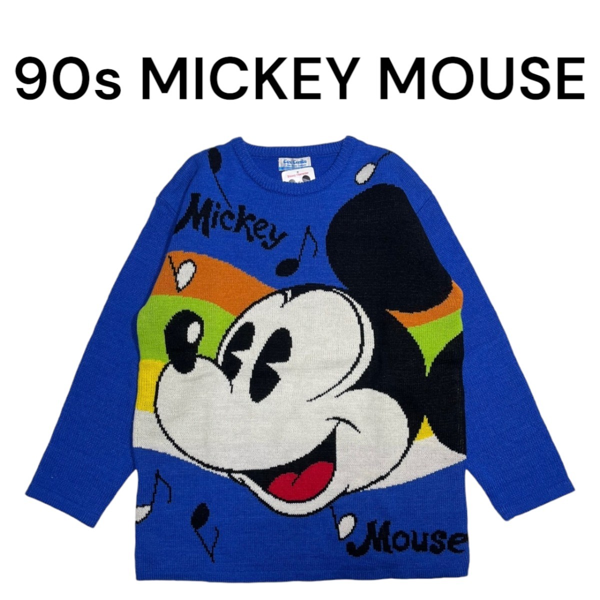 90s MICKEYMOUSE全面ビッグプリント ニットセーター デッドストック