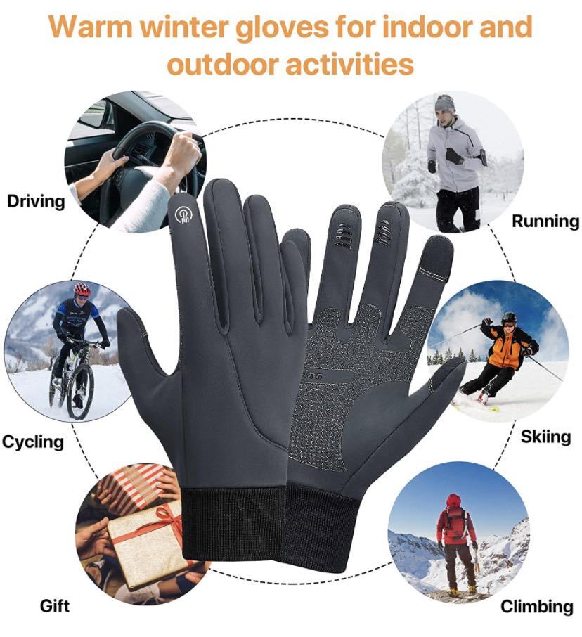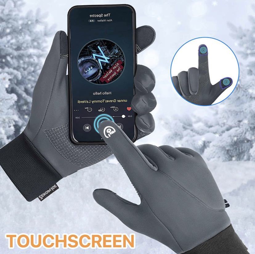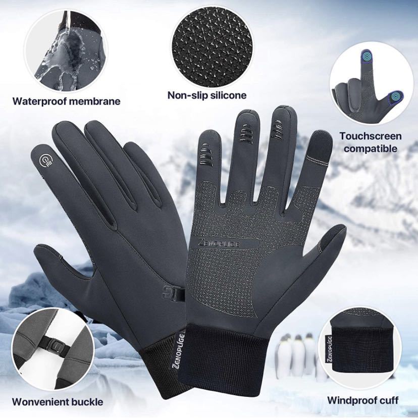 防寒グローブ 自転車グローブ アウトドアグローブ 防水 防風 裏起毛 スマホタッチパネル対応 滑り止め バックル設計 自転車 登山 バイク用 ウォーキング 通勤 冬用 男女兼用 メンズ レディース グレー