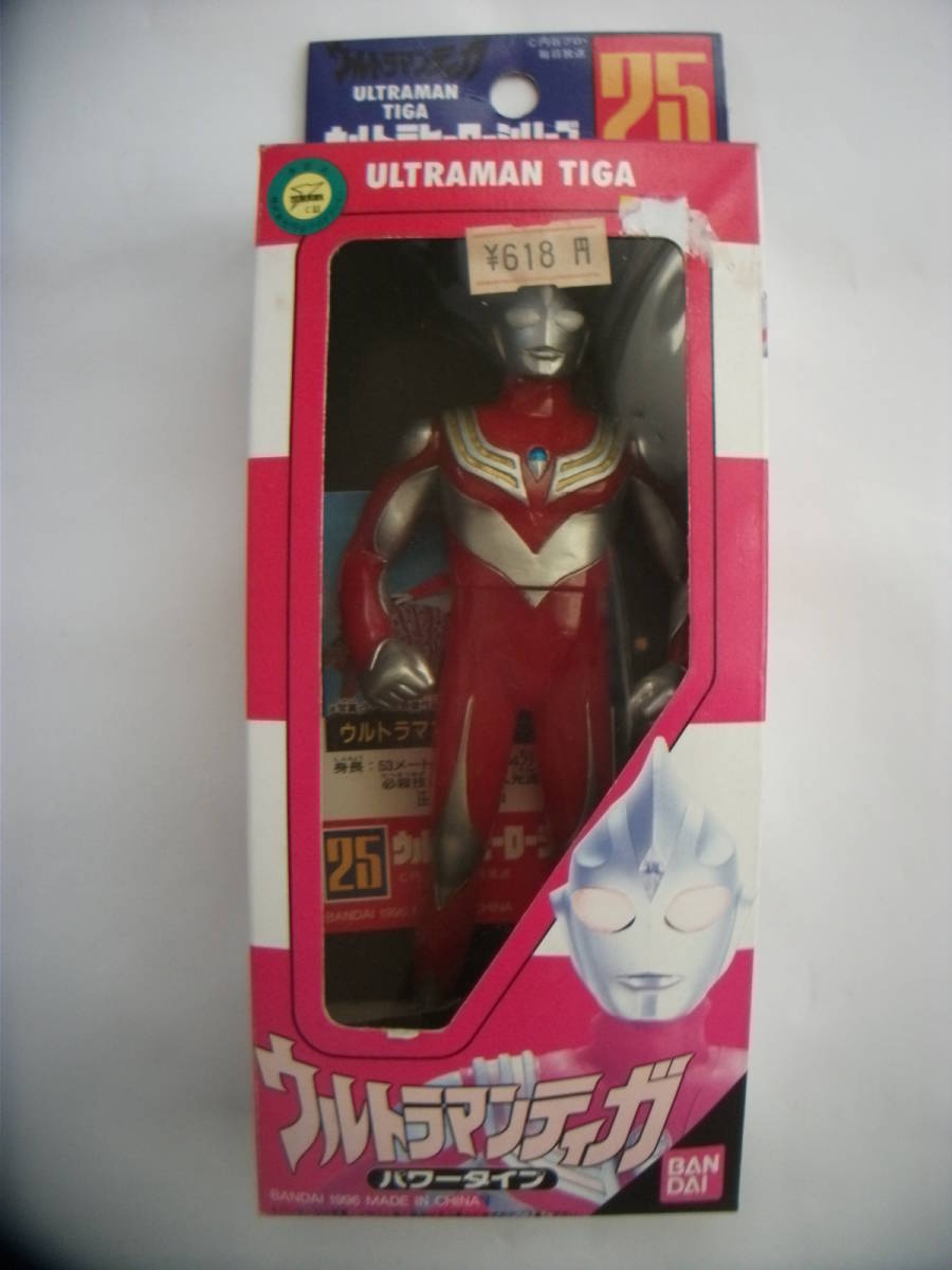 バンダイ ウルトラヒーローシリーズ25 「ウルトラマンティガ(パワータイプ)」 ソフビ人形 未使用品 1996年 値札シール跡アリ