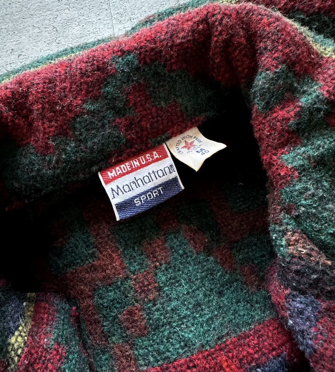 80s-90s MADE IN USA “ MANHATTAN SPORT ” NATIVE RUG JACKET OLD VINTAGE 。