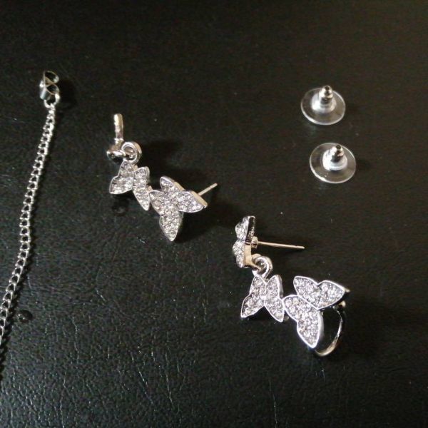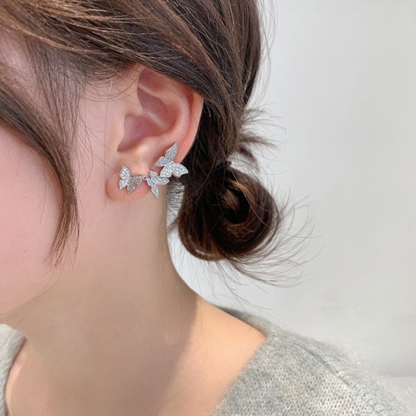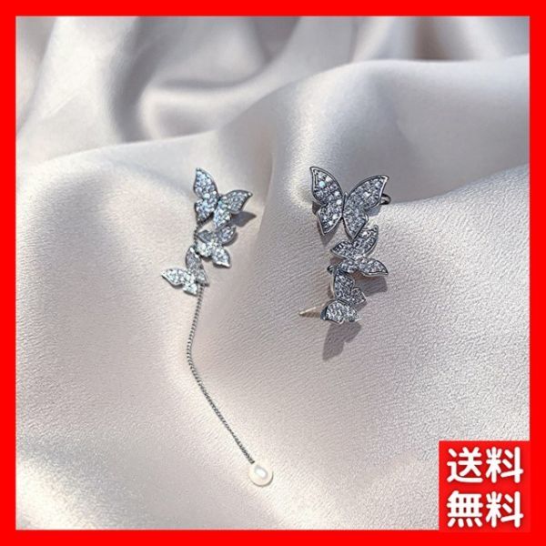 ピアス S925針 シルバー 蝶 真珠 バタフライ パール アシメ レディース 韓国 ラインストーン 非対称 キラキラ 綺麗 カフ #C972-7