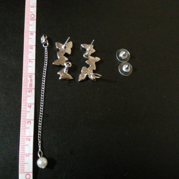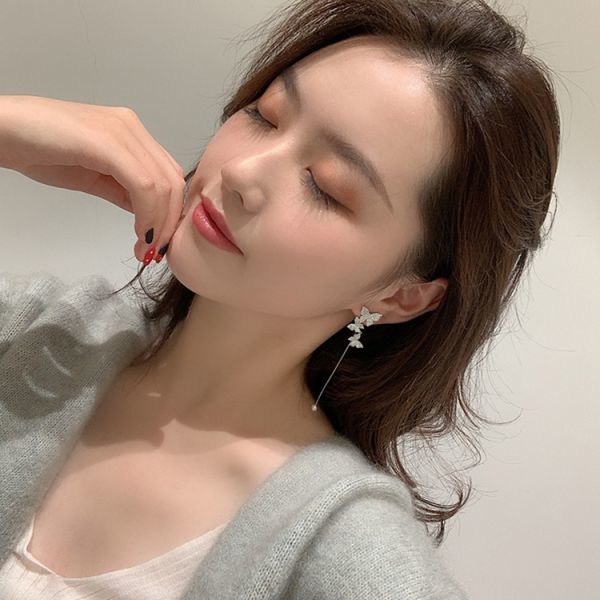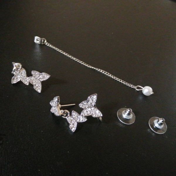 ピアス S925針 シルバー 蝶 真珠 バタフライ パール アシメ レディース 韓国 ラインストーン 非対称 キラキラ 綺麗 カフ ロングチェーン アレルギー 対策 防止