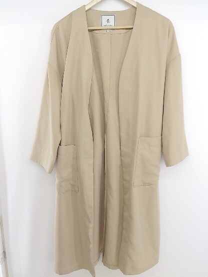 ◇ ◎ ROPE PICNIC ロペピクニック ウエストリボン 長袖 ノーカラー ロング ジャケット サイズ 38 ベージュ レディース P