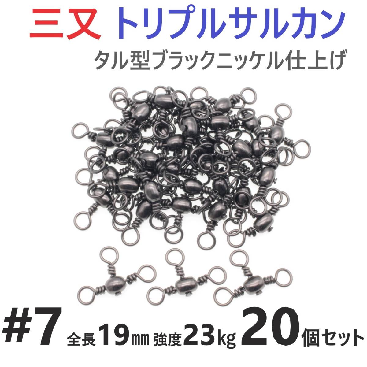 【送料無料】三又サルカン トリプルサルカン #7 全長19㎜ 強度23㎏ 20個セット 胴突き仕掛け 捨てオモリ仕掛けに 三つ又 強力ヨリモドシ