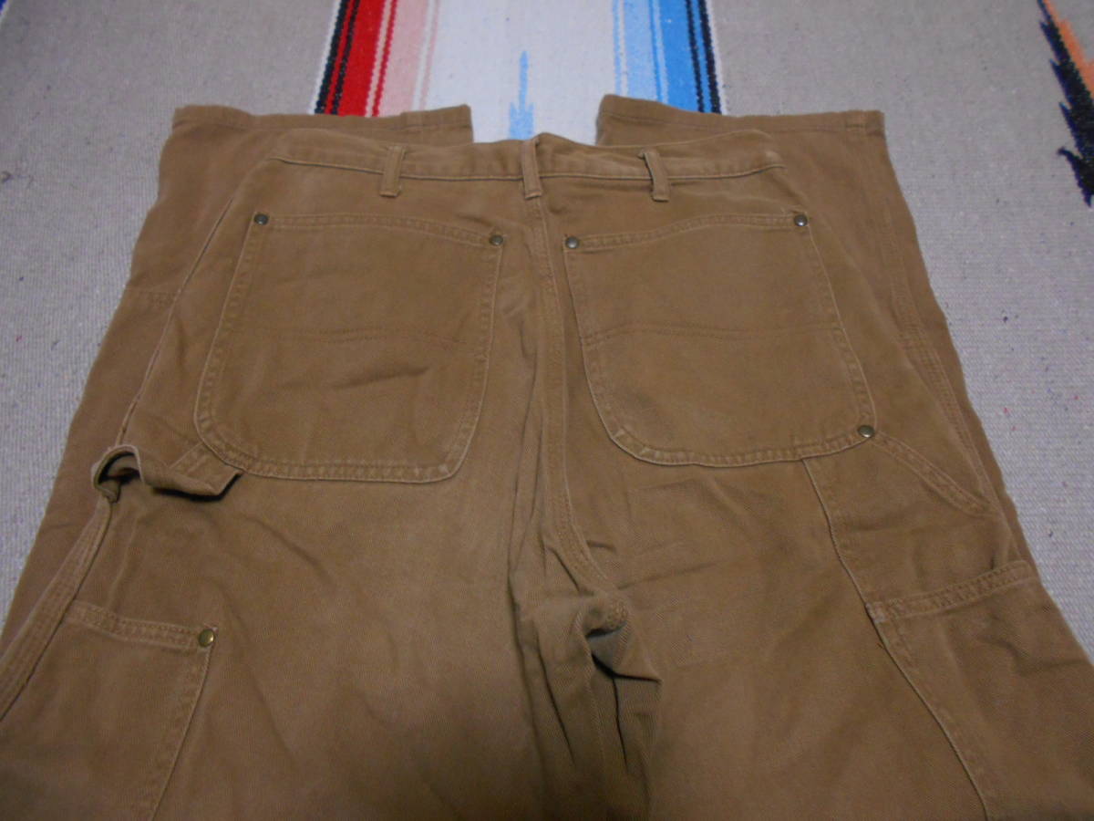 クラシックワークパンツ特有 コットン100%デニム素材使用、腿から膝の当て布補強、随所のリベット補強、重ね着もしやすく動き易いワイドシルエット、トリプルステッチ縫製、  等等...拘りぬいたディテールが極めて良いテイスト
