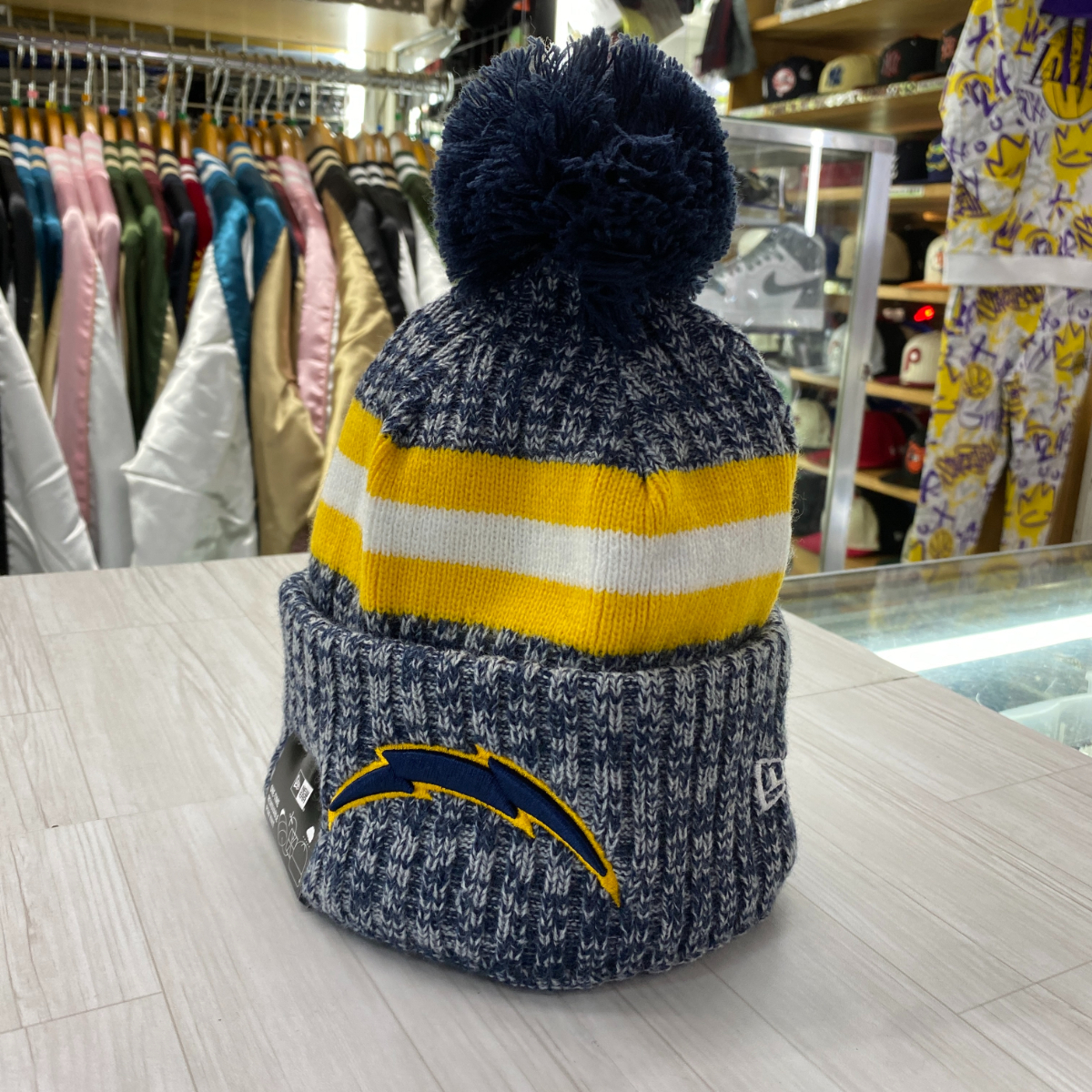 USA正規品 NEWERA ニューエラ NFL 公式 オンフィールド 極暖 ニット帽 ロサンゼルス チャージャーズ Chargers フリース ポンポン付き 紺