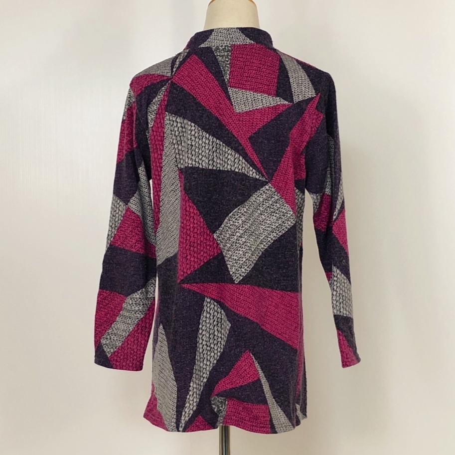 Y0355 a Line レディース トップス プルオーバー カットソー 長袖 韓国製 パープル 紫 ピンク 桃 グレー 灰 総柄 エレガント おしゃれ 秋冬