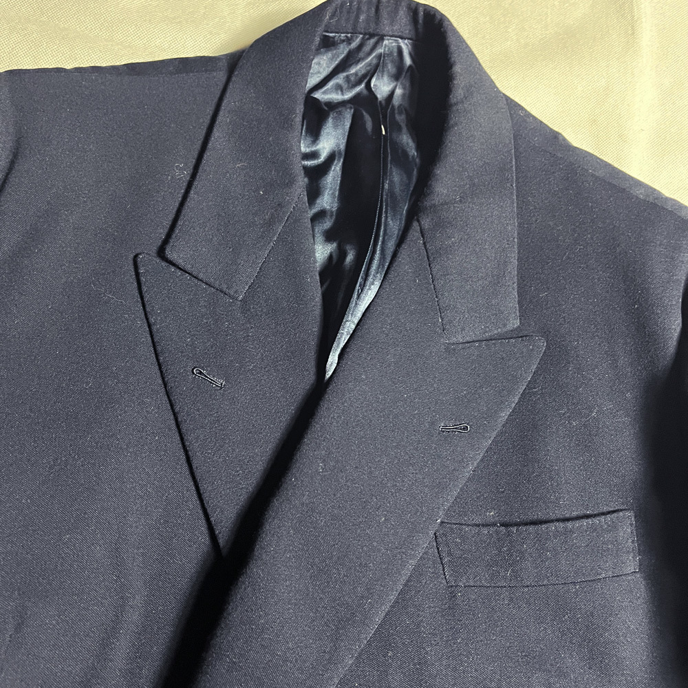 上質な素材感と作り込みが素晴らしい完全デッドストック!推定40年代頃の物と思われる、フレンチウールギャバジンダブルブレステッドピークドラペルジャケットが入荷して参りました。しかも試着程度のほぼデッドストックコンディション!